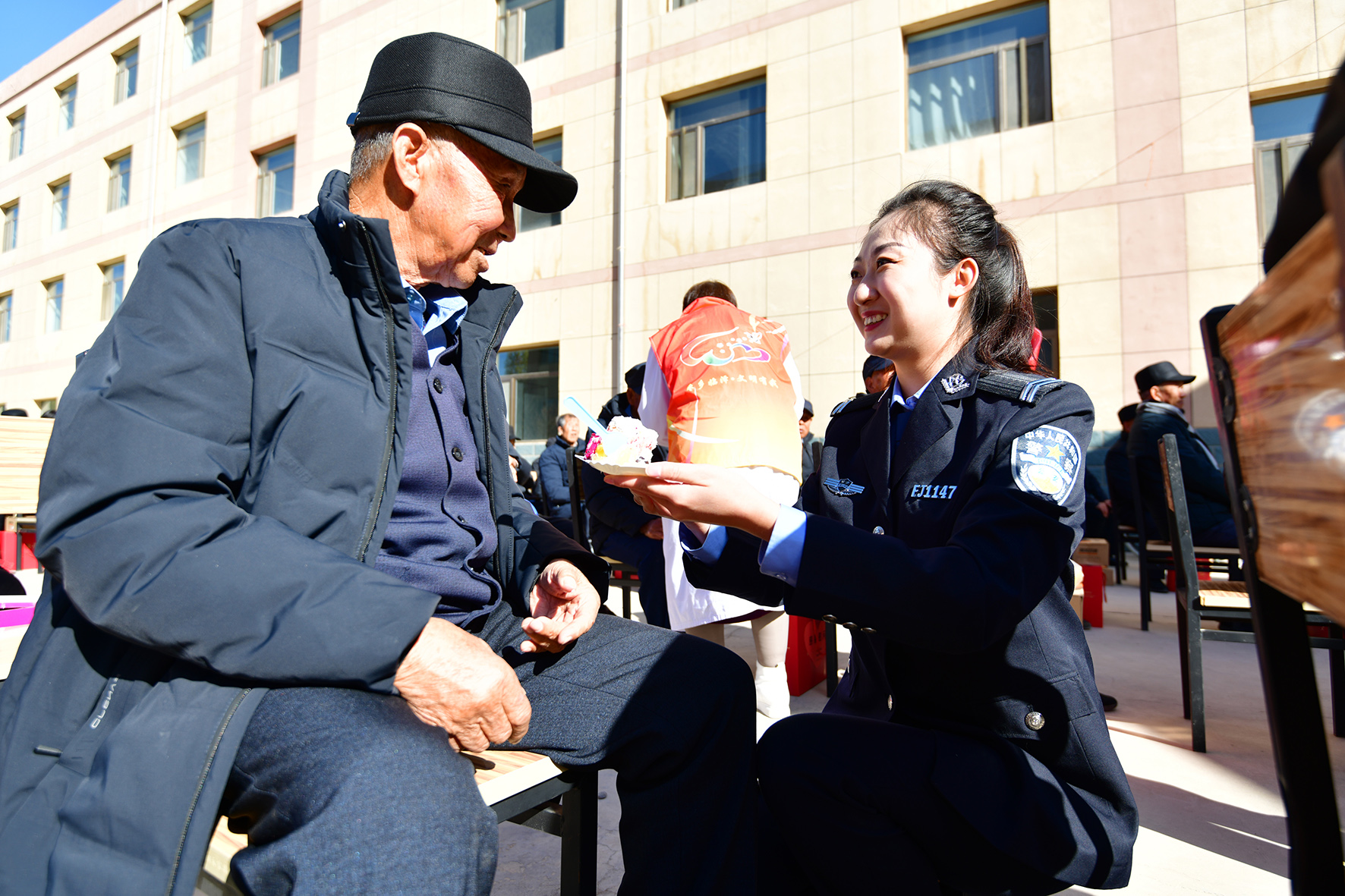 10月23日,甘肅省臨澤縣公安局民警輔警走進臨澤縣中心敬老院,開展“關(guān)愛老年人 情暖夕陽紅”送溫暖志愿服務活動。