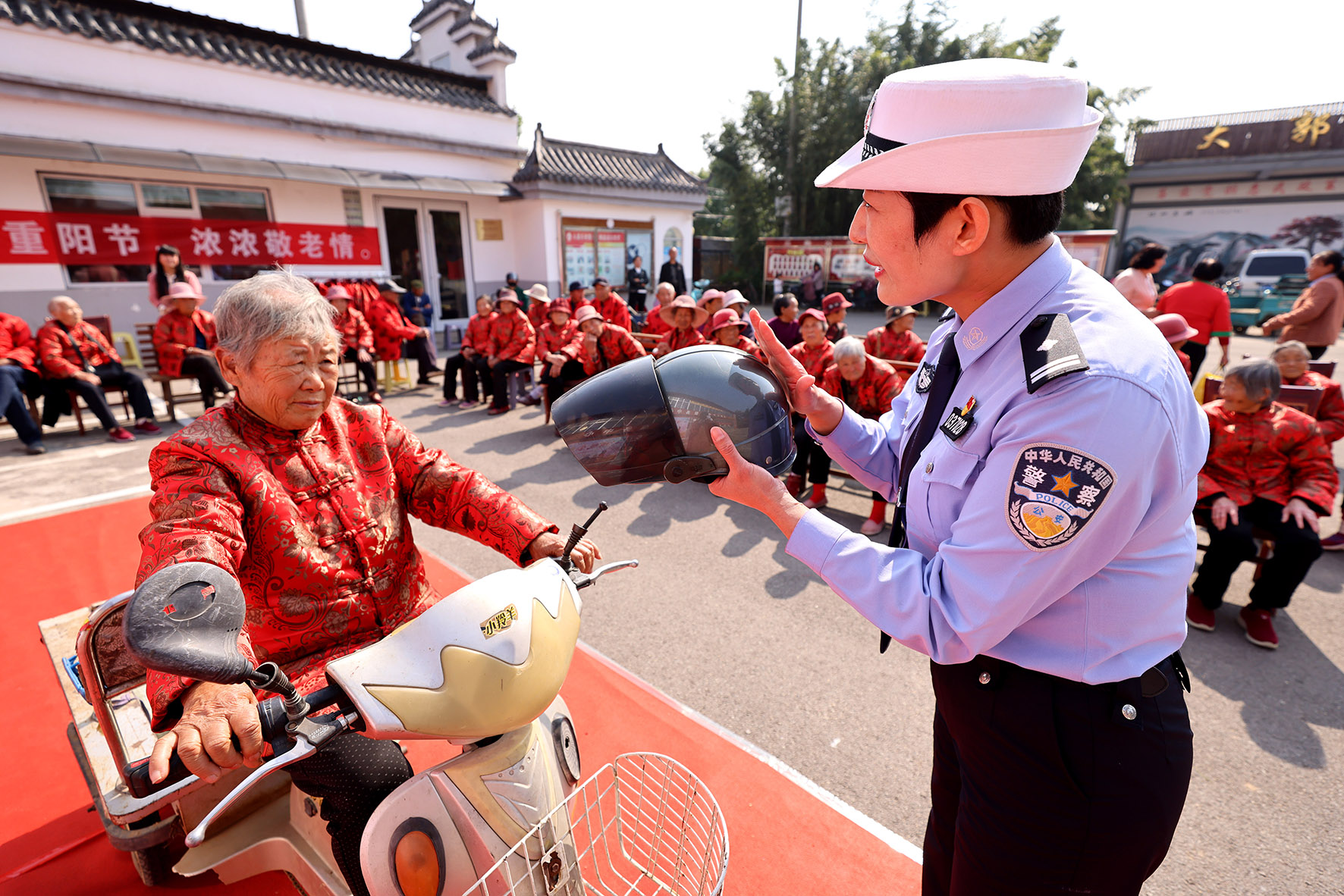 10月23日,陜西省大荔縣公安局交警大隊民警輔警走進社區(qū)向老年人宣傳“一盔一帶”“一老一小”交通安全和防詐騙宣傳活動。