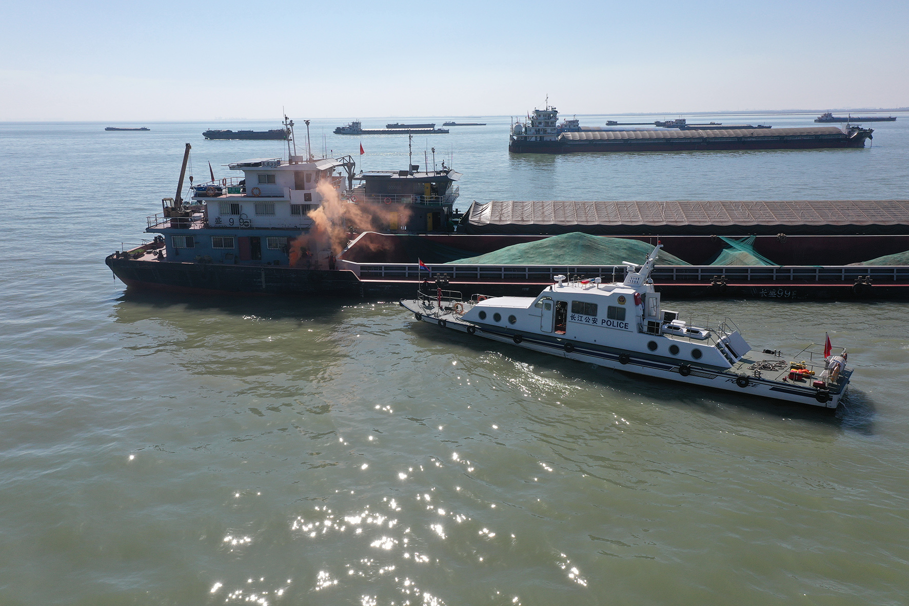 11月7日,長江航運公安局南通分局開展消防救援綜合演練。