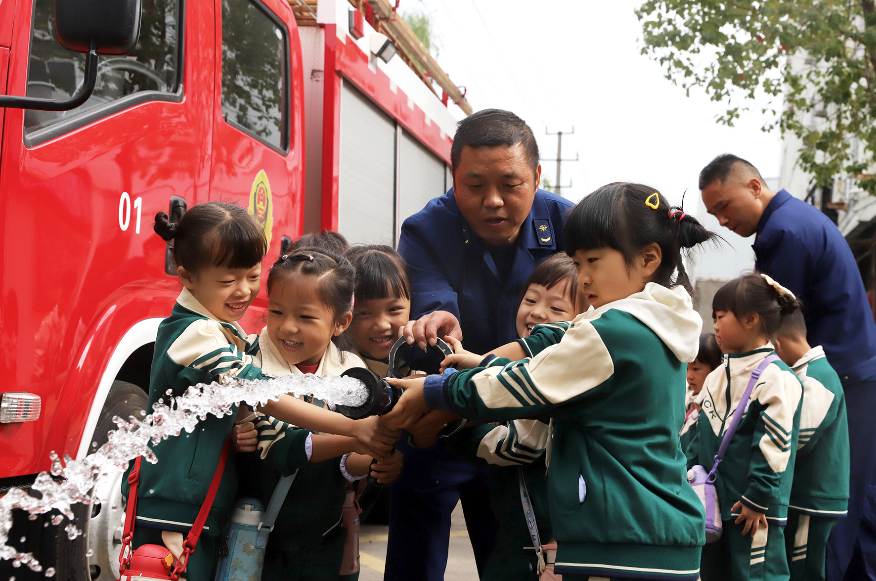 11月8日,浙江省臺州市路橋區(qū)橫街鎮(zhèn)中心幼兒園組織小朋友走進當?shù)叵谰仍?,讓小朋友零距離學習消防安全常識。