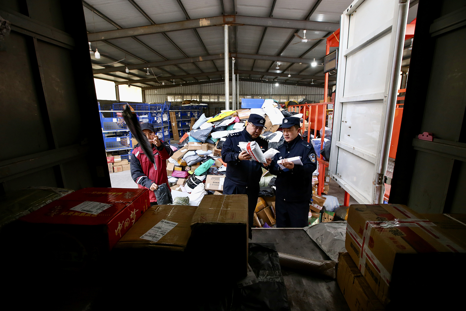 11月10日,山東省濟(jì)南市公安局市中區(qū)分局七賢派出所民警到轄區(qū)快遞企業(yè)分揀中心進(jìn)行安全檢查。