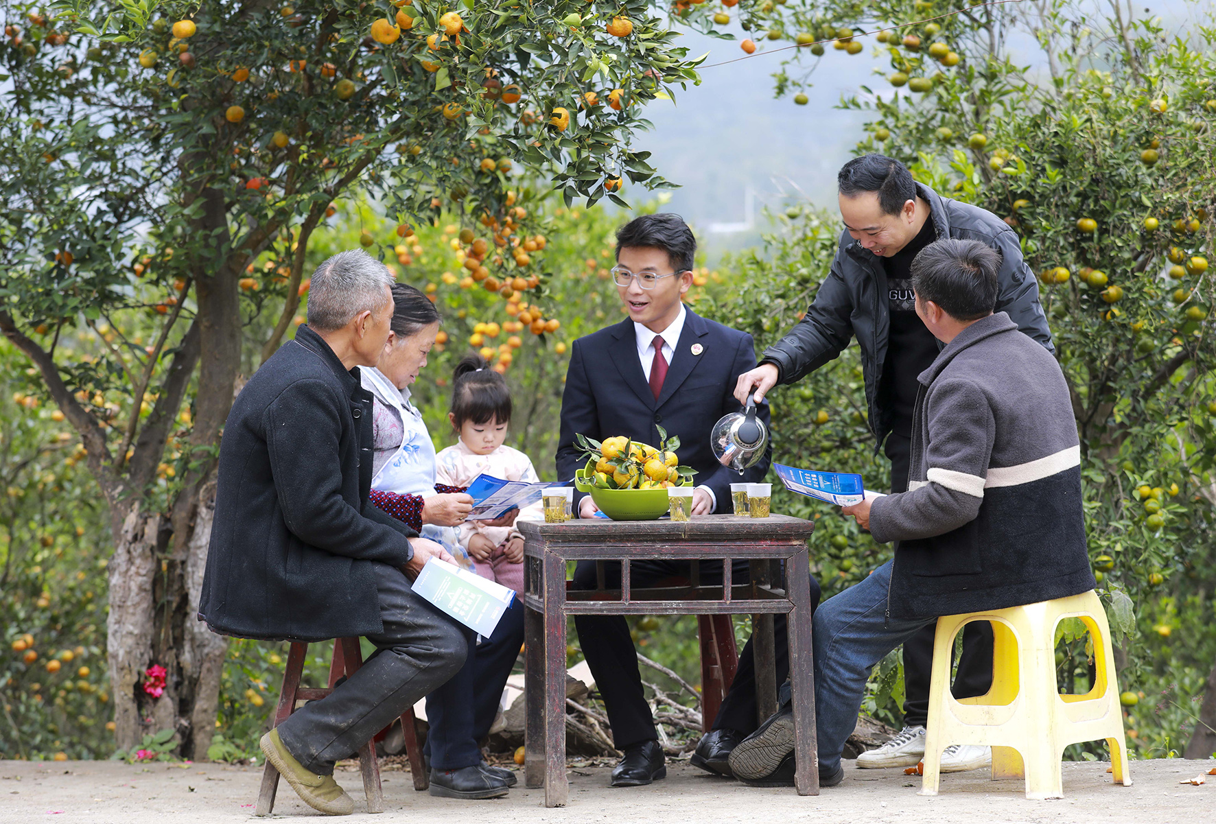 圖為檢察干警在素樸鎮(zhèn)索風(fēng)村農(nóng)家院子給農(nóng)戶講解防范電信網(wǎng)絡(luò)詐騙知識。