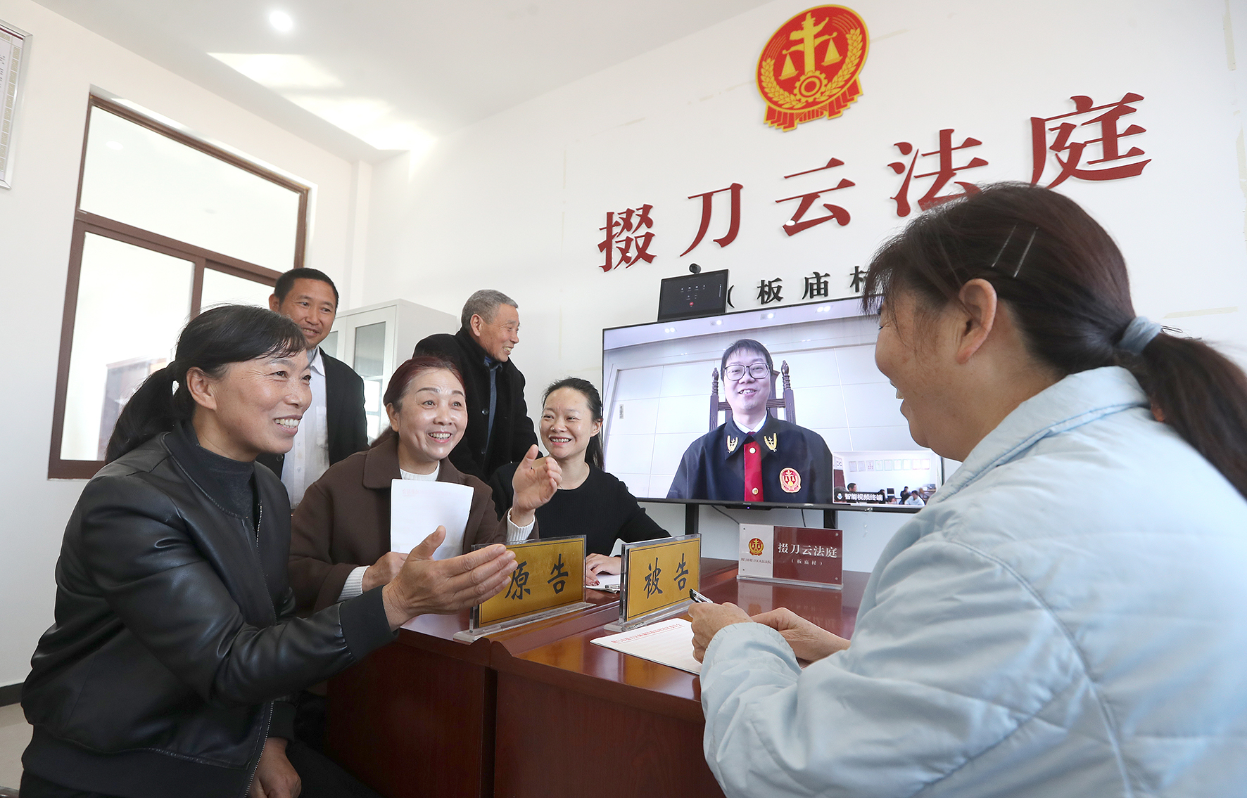 11月21日,湖北省荊門市掇刀區(qū)人民法院利用設(shè)立在麻城鎮(zhèn)板廟村的“掇刀云法庭”,僅用1個(gè)小時(shí)化解了一起耕地糾紛,雙方當(dāng)事人滿心歡喜。