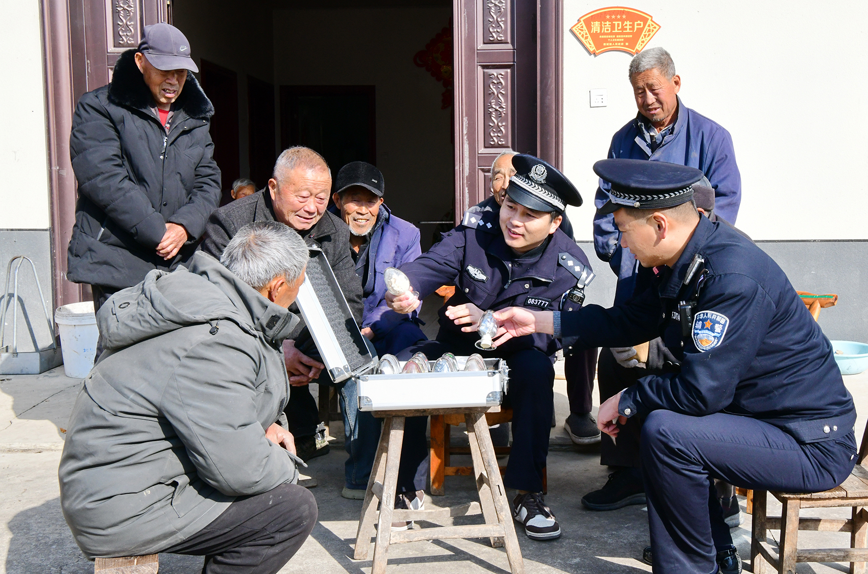 11月24日,安徽省阜南縣鹿城鎮(zhèn)劉樓村片區(qū)民警李明在村民家中講解如何識(shí)別毒品。