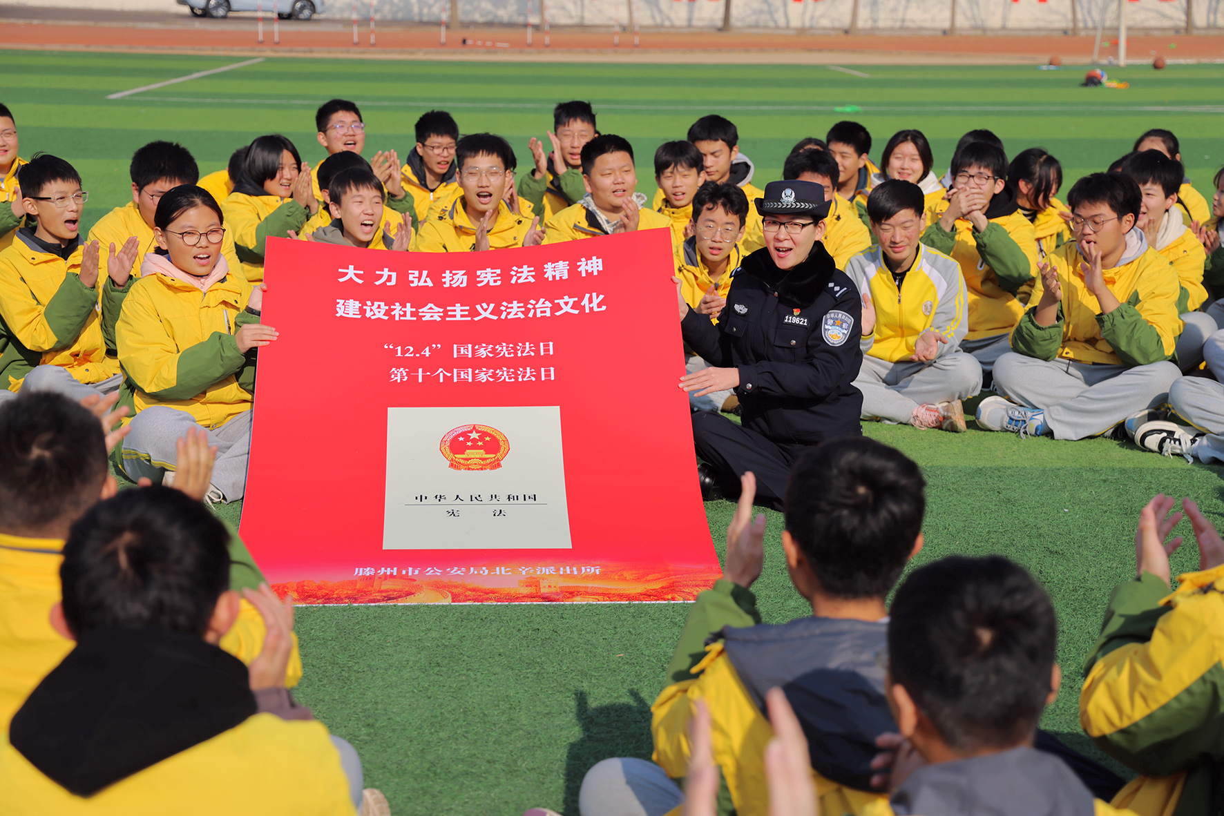 12月4日,山東省滕州市公安局北辛派出所民警為學(xué)生們講解憲法知識(shí)。
