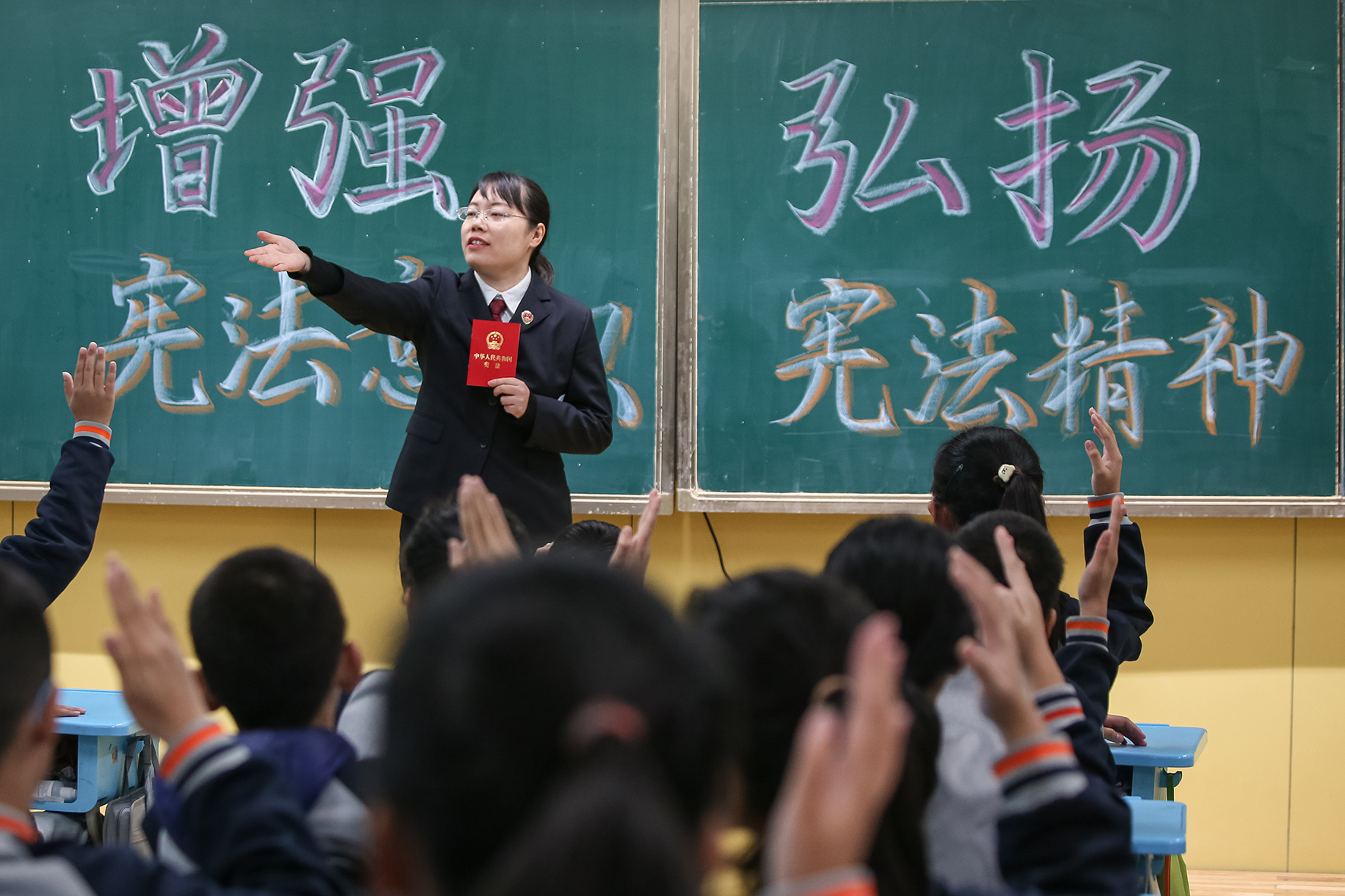 12月4日,陜西省渭南市中級(jí)人民法院組織法官走進(jìn)轄區(qū)中小學(xué),開(kāi)展憲法宣傳進(jìn)校園活動(dòng)。