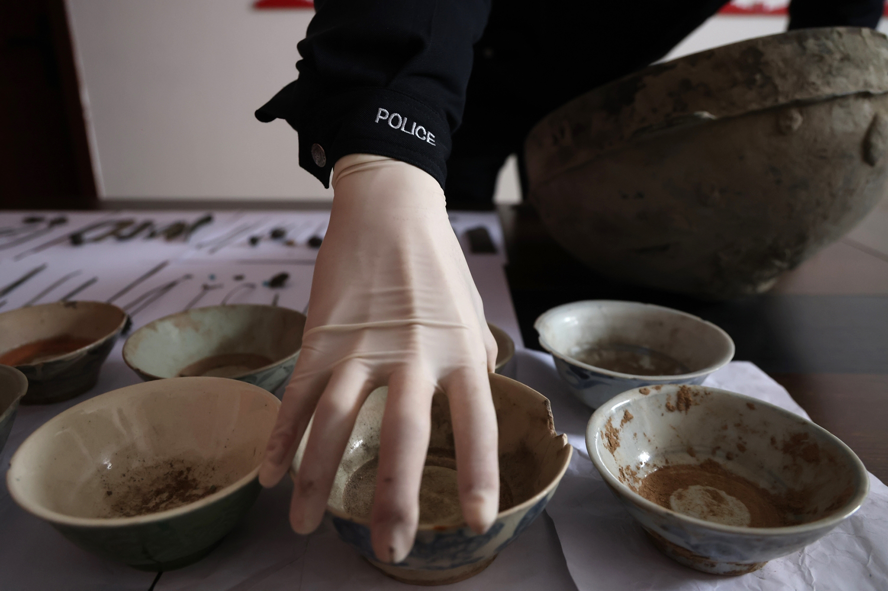 近日,遼寧省新民市公安局大柳派出所破獲一起古墓被盜案件,抓獲犯罪嫌疑人史某和王某。經(jīng)查,二人累計盜挖古墓10座,盜取古錢幣84枚、四耳銅釜1個、銅鏡1個、碗具8個、銀器若干。目前,史某和王某因涉嫌盜掘古墓葬罪和倒賣文物罪已被警方依法予以刑事拘留,案件正在進(jìn)一步辦理中。