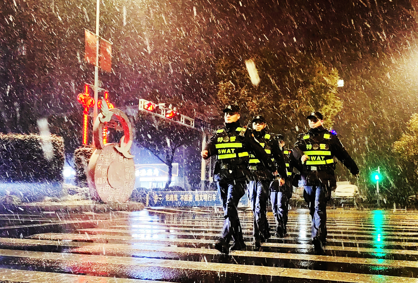 12月15日,安徽省當(dāng)涂縣公安局特(巡)大隊(duì)啟動(dòng)惡劣天氣應(yīng)急預(yù)案,落實(shí)各項(xiàng)管控措施,提高街面見(jiàn)警率,維護(hù)社會(huì)治安秩序持續(xù)穩(wěn)定。