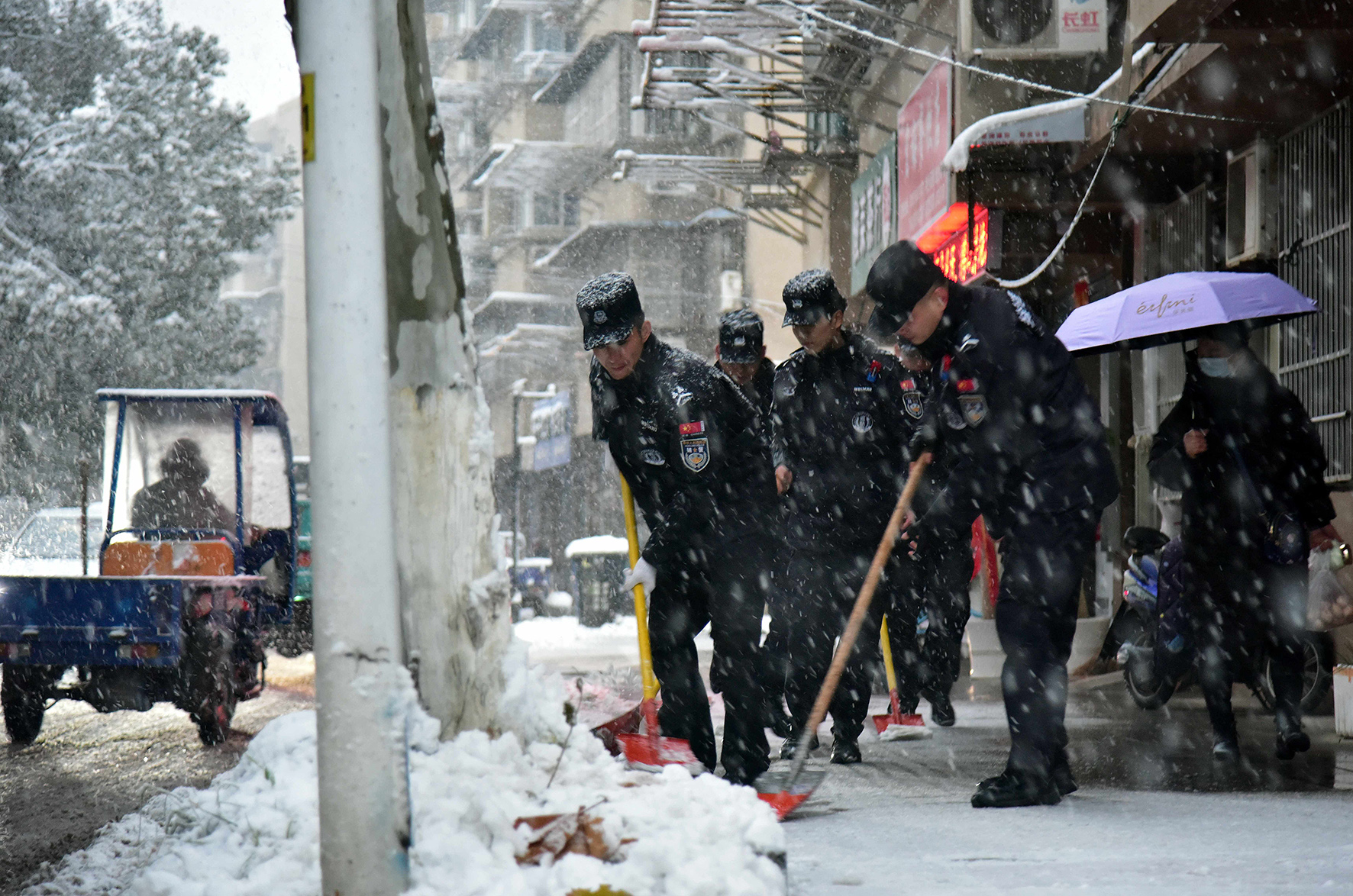 12月18日,安徽省當(dāng)涂縣突降大雪。當(dāng)涂縣公安局第一時(shí)間成立了黨員突擊隊(duì),迅速投入到河濱路鏟雪一線,確保路面安全。