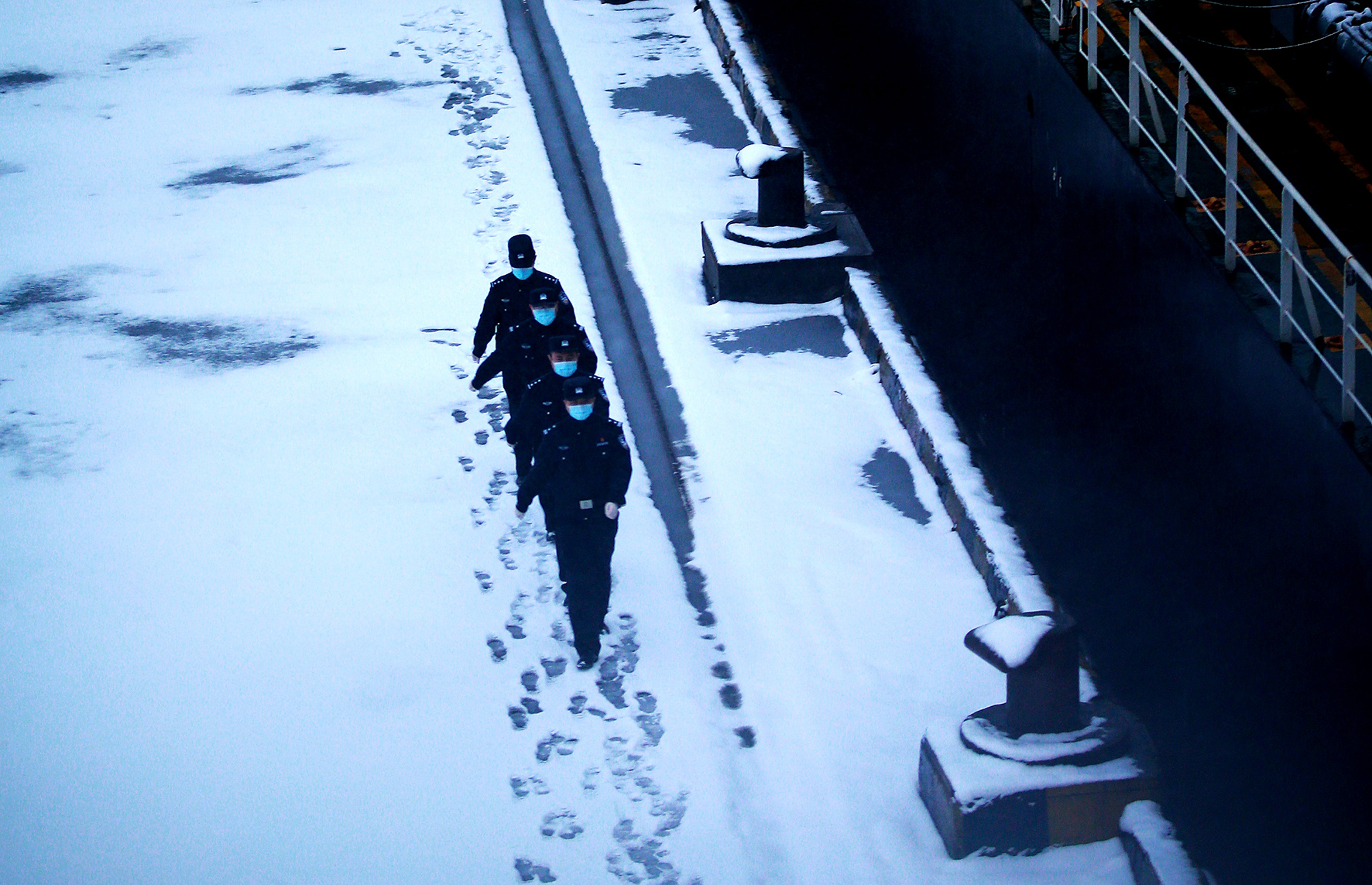 12月18日,南京港出入境邊防檢查站執(zhí)勤一隊(duì)民警聞“雪”而動(dòng),迅速啟動(dòng)惡劣天氣應(yīng)急預(yù)案,24小時(shí)不間斷加強(qiáng)對(duì)港口執(zhí)勤區(qū)域、錨地等重點(diǎn)部位和場(chǎng)所的巡查力度,全力保障口岸通關(guān)順暢。