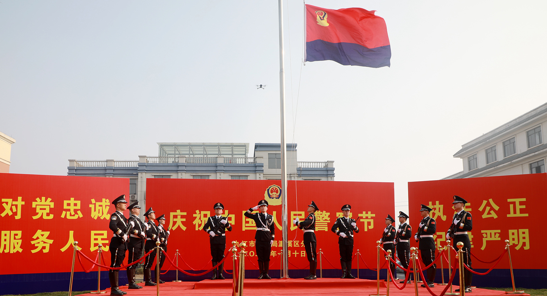 1月10日,上海市公安局崇明分局舉行了隆重的升警旗儀式。