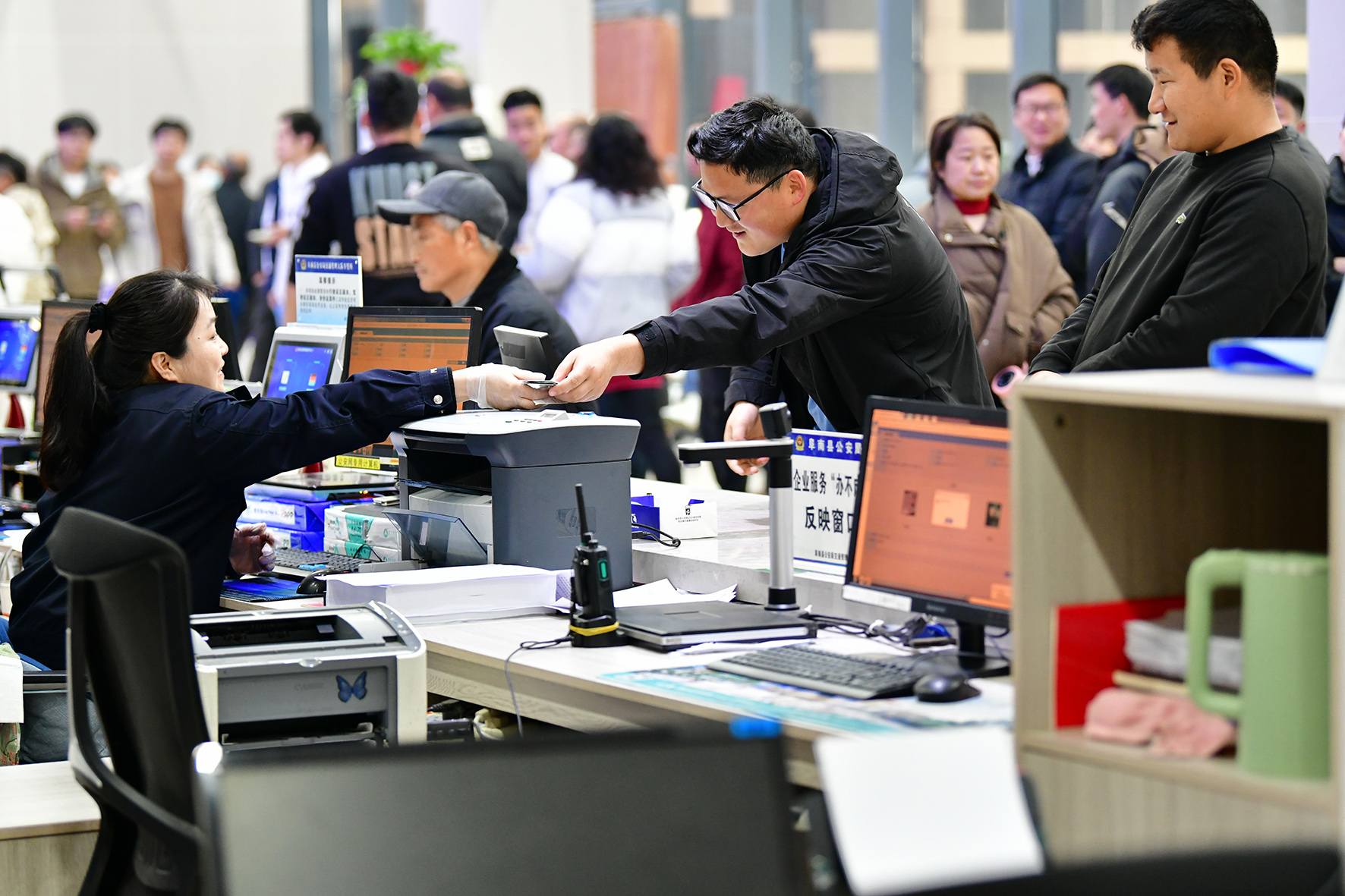 2月18日,安徽省阜南縣公安局交管大隊車管所工作人員在為群眾辦理車駕管業(yè)務(wù)。春節(jié)假期結(jié)束第一天,阜南縣公安局交管大隊車管所服務(wù)大廳內(nèi)迎來業(yè)務(wù)高峰,車管所開啟“延時服務(wù)”工作模式,全力保障業(yè)務(wù)辦理高效有序,為群眾紓困解難。