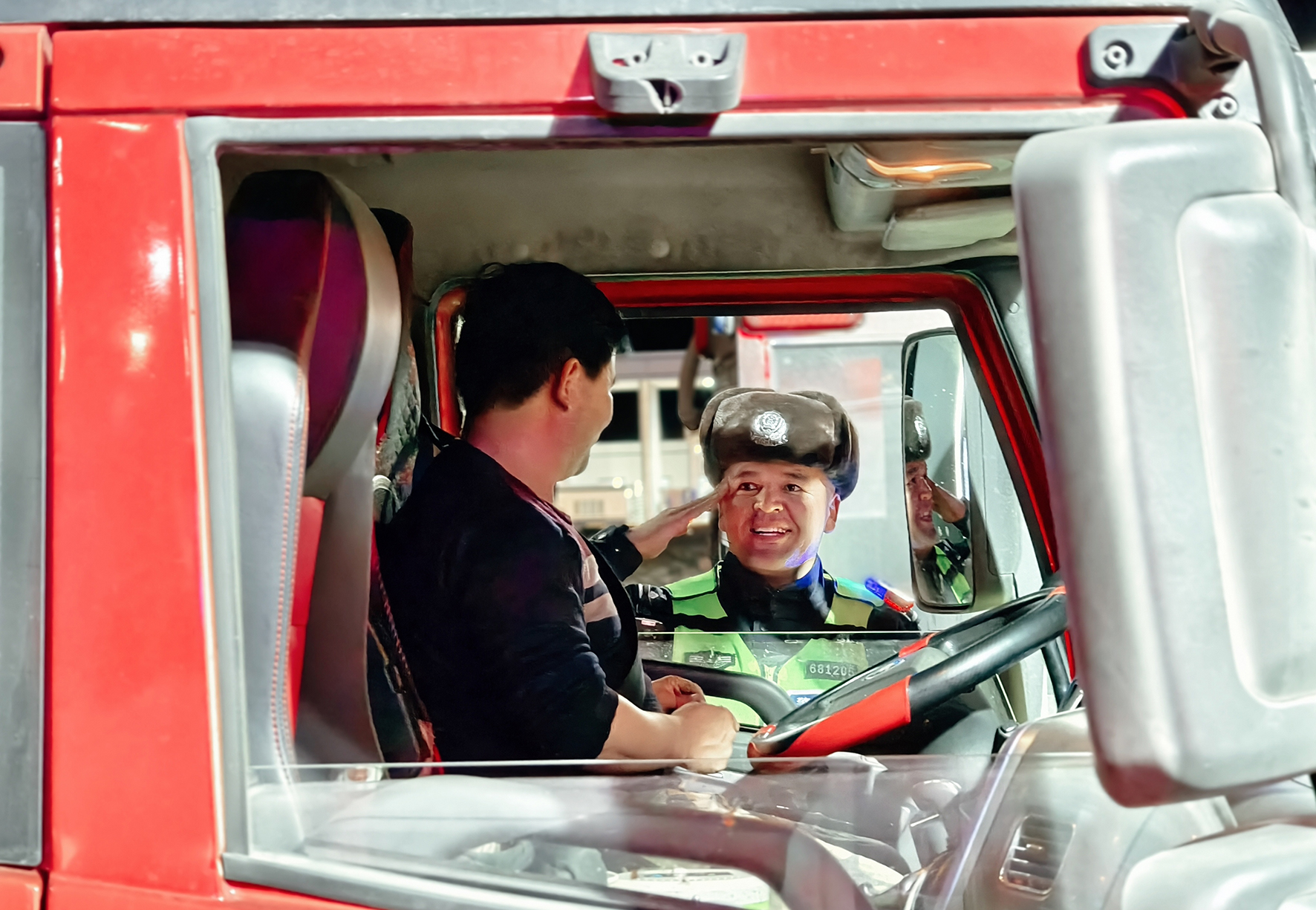 2月12日晚,新疆哈密邊境管理支隊白山泉邊境檢查站全體民輔警堅守崗位,對過往車輛人員進行檢查。