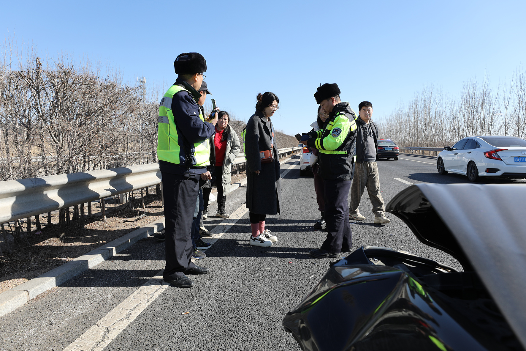 2月15日,遼寧省阜新市公安局交警支隊高速交警一大隊全員上崗,在高速線路上開展巡邏,及時處理事故,為群眾平安返程保駕護航。