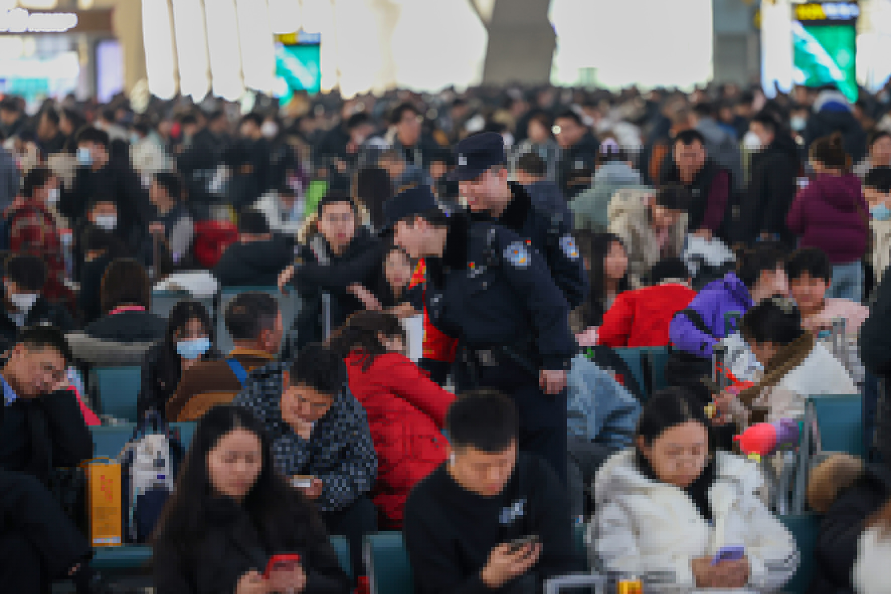 2月15日,春運進入返程階段。石家莊鐵路公安處在進站口、候車室、站臺等客流密集部位增派警力,全力以赴為旅客保駕護航。