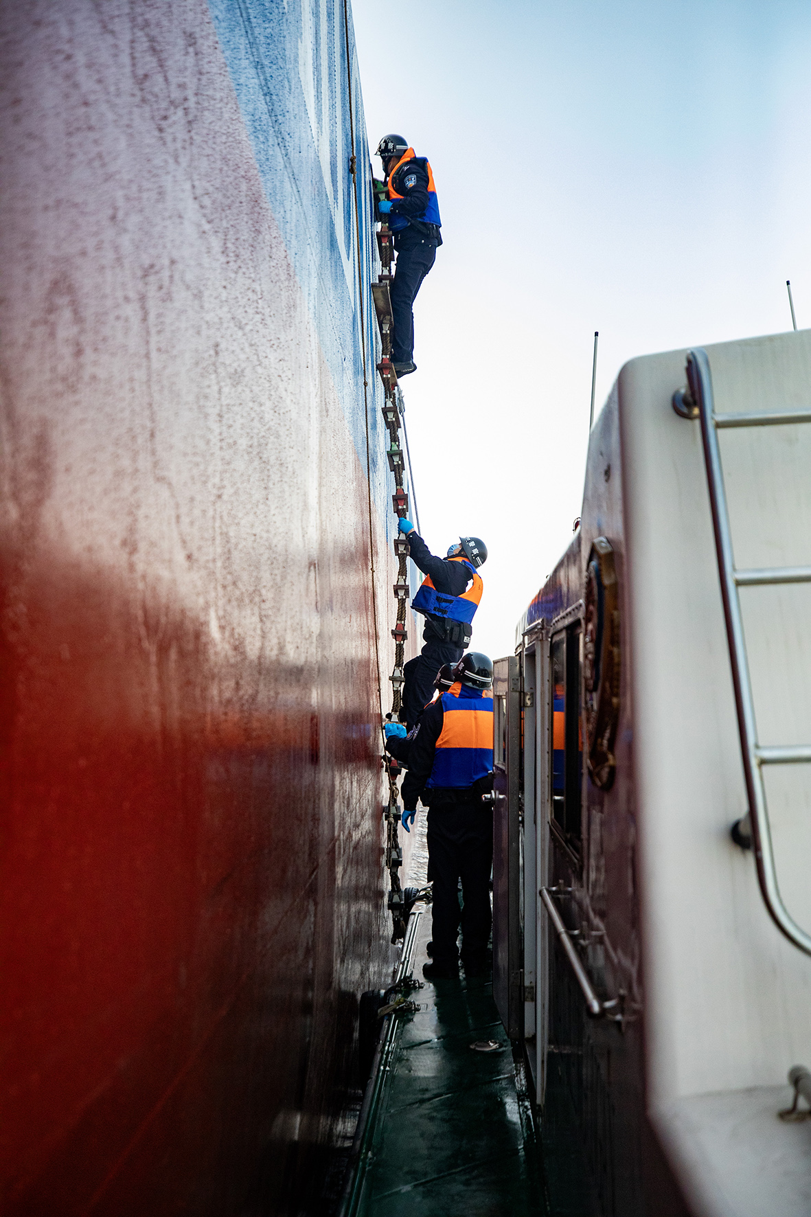 2月11日,長江航運公安局鎮(zhèn)江分局聯(lián)合鎮(zhèn)江出入境邊防檢查站全力服務港口安全生產(chǎn),船舶快速通關。