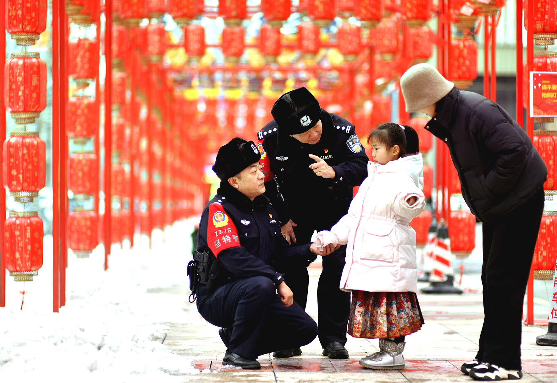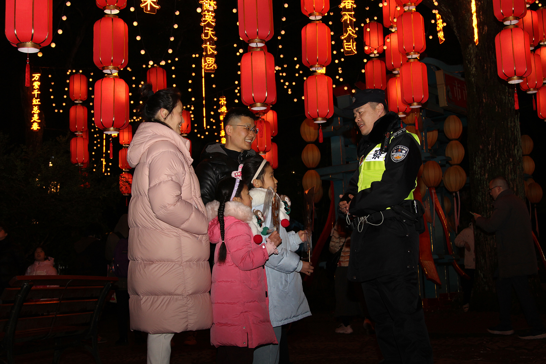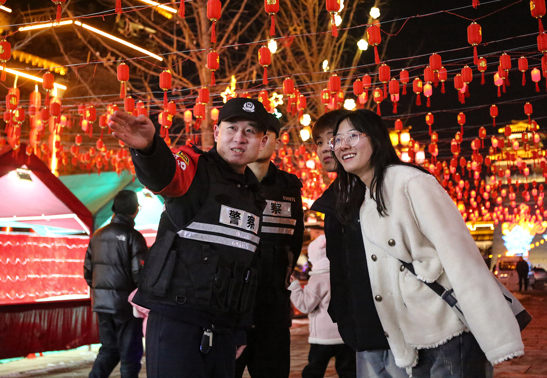 2月23日,河南省鄭州市公安局金水分局巡特警隊(duì)員在轄區(qū)鬧元宵場(chǎng)地,向群眾宣講節(jié)日安全防范知識(shí)。