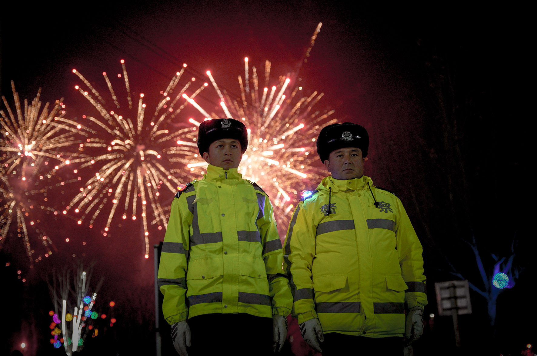 2月24日,新疆皮山縣石榴廣場(chǎng)舉行煙花表演。皮山交警堅(jiān)守崗位,確保群眾歡度元宵。