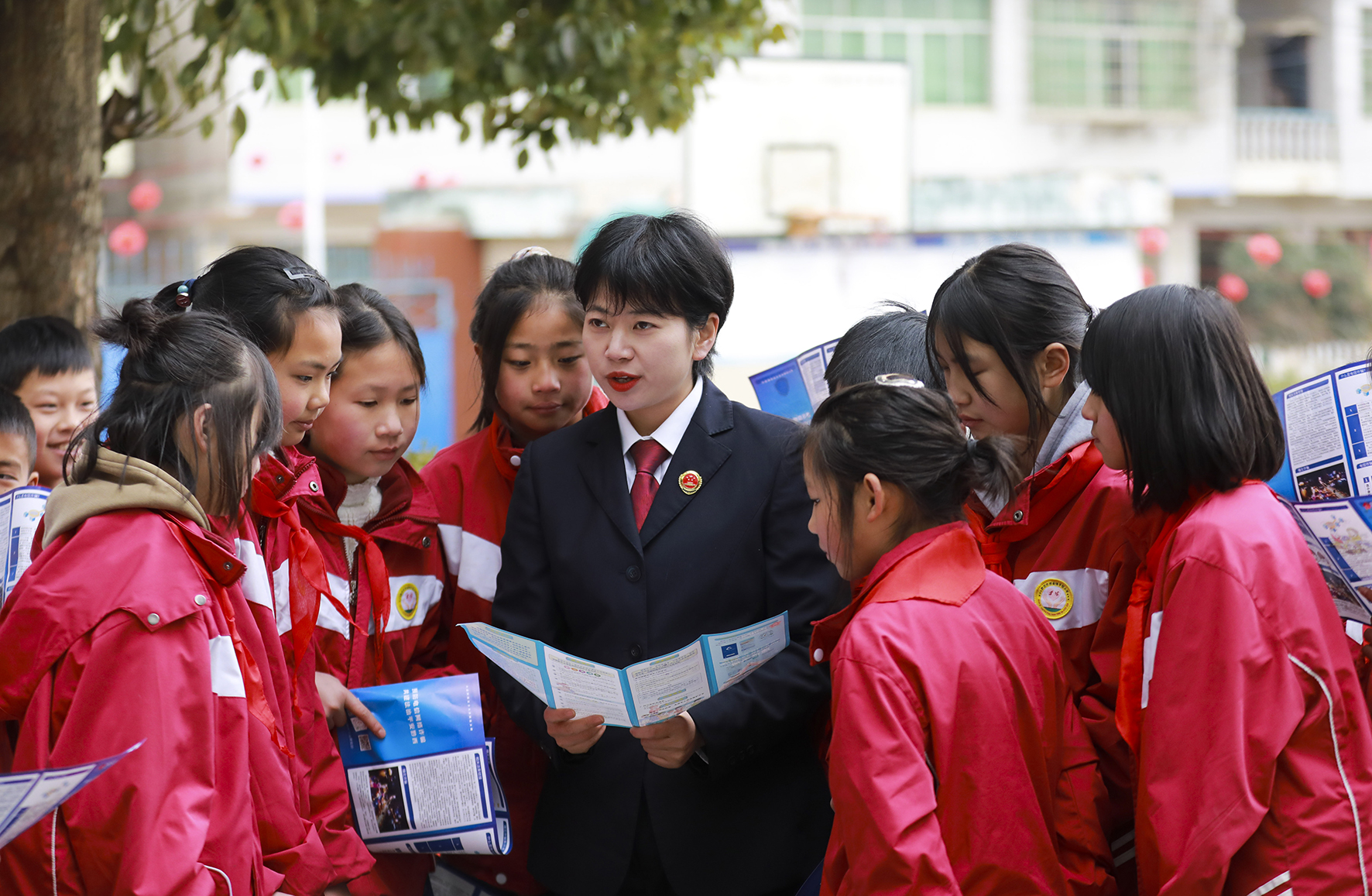 2月26日,開(kāi)學(xué)第一天。貴州省黔西市人民檢察院干警走進(jìn)雨朵鎮(zhèn)平壩小學(xué)開(kāi)展法治宣傳及安全教育活動(dòng)。
