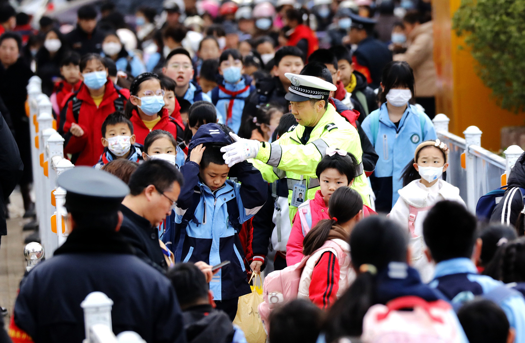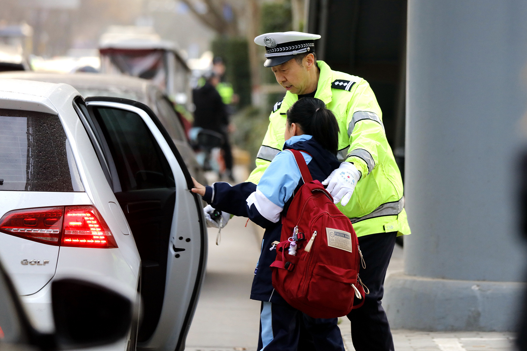 3月6日,是陜西省渭南市公安局交警支隊(duì)臨渭大隊(duì)60歲老民警李太平退休前的最后一班護(hù)學(xué)崗。從警23年的他曾經(jīng)是一名軍人,轉(zhuǎn)業(yè)到臨渭交警大隊(duì)后,從事交通管理工作最多的就是與學(xué)校的孩子們打交道,每周他都會走上課堂給孩子們宣傳交通安全知識,每天早上7點(diǎn)會準(zhǔn)時站到學(xué)校門前,護(hù)送學(xué)生安全上學(xué)。