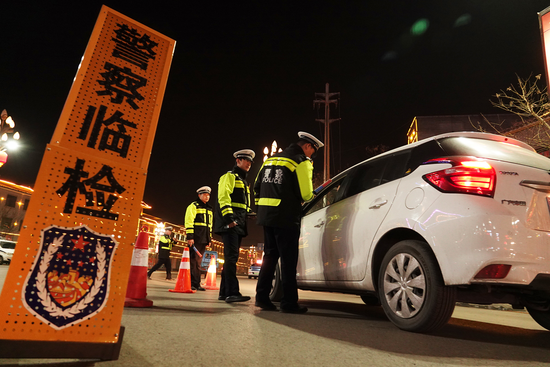 3月6日,山西省運城市新絳縣交警大隊民輔警在108國道入城三岔口夜查酒駕。