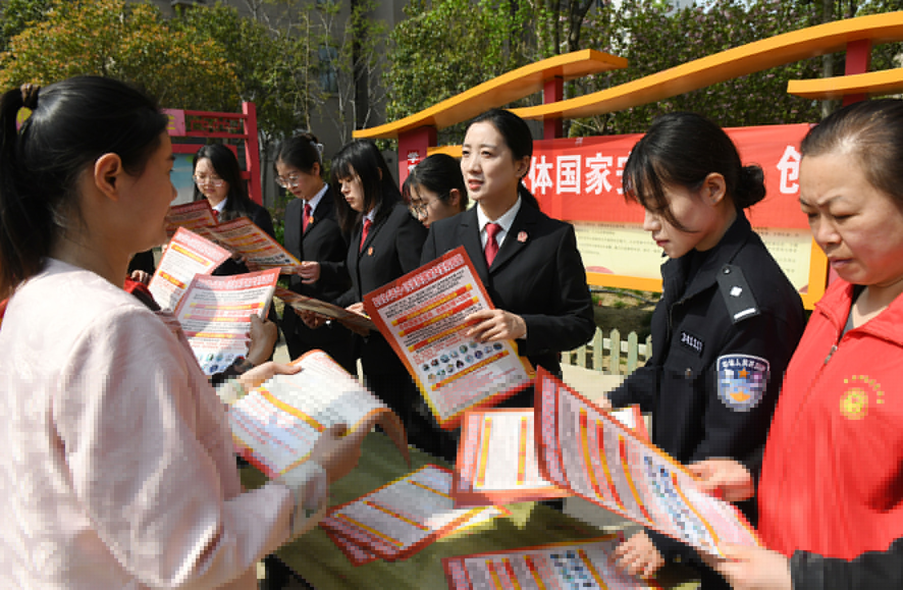 圖為4月11日,民警輔警會同工業(yè)區(qū)平安辦工作人員、平安志愿者在轄區(qū)開展國家安全知識宣傳。
