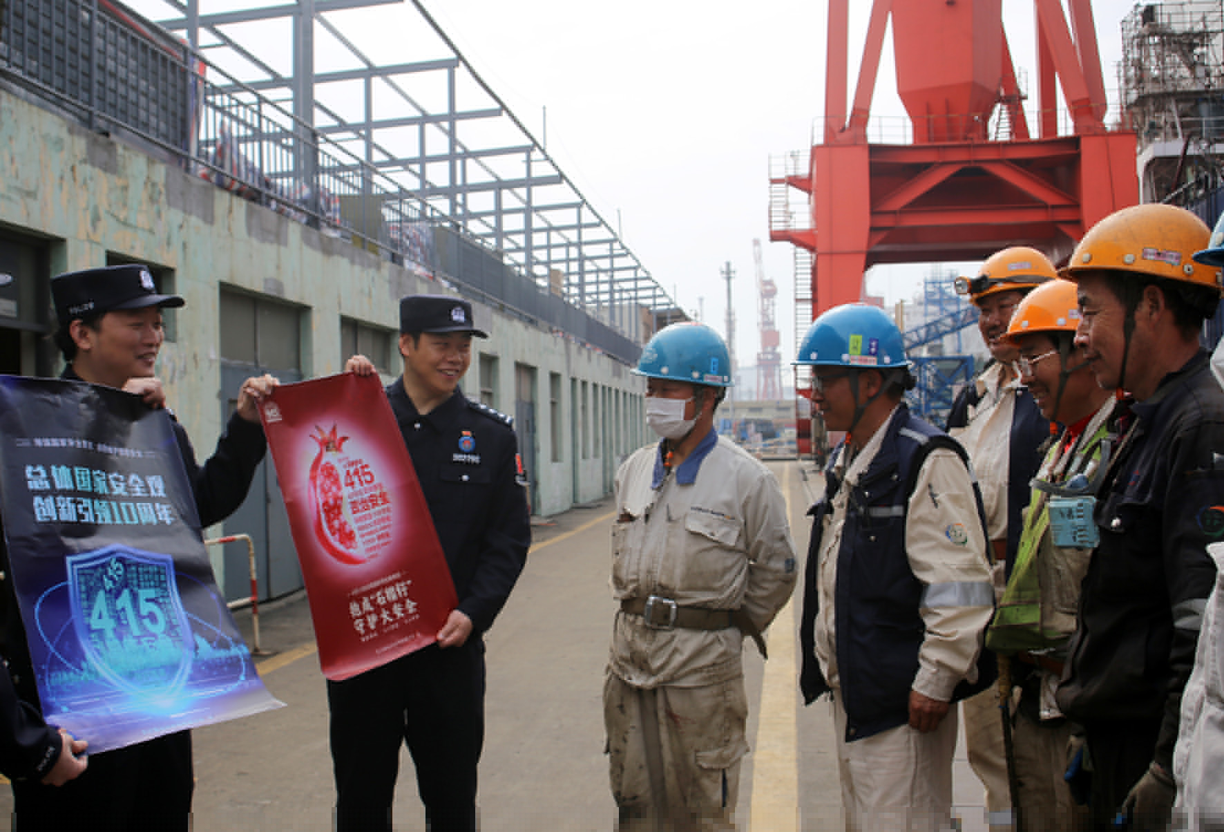 4月11日,長(zhǎng)江航運(yùn)公安局南通分局南通派出所聯(lián)合南通邊檢執(zhí)勤二隊(duì)走進(jìn)轄區(qū)企業(yè),宣講國(guó)家安全法等法律法規(guī)。