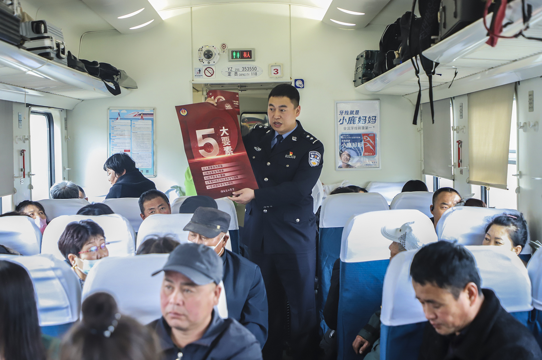4月11日,沈陽(yáng)鐵路公安局沈陽(yáng)公安處組織民警在列車上開展全民國(guó)家安全教育日普法宣傳活動(dòng)。