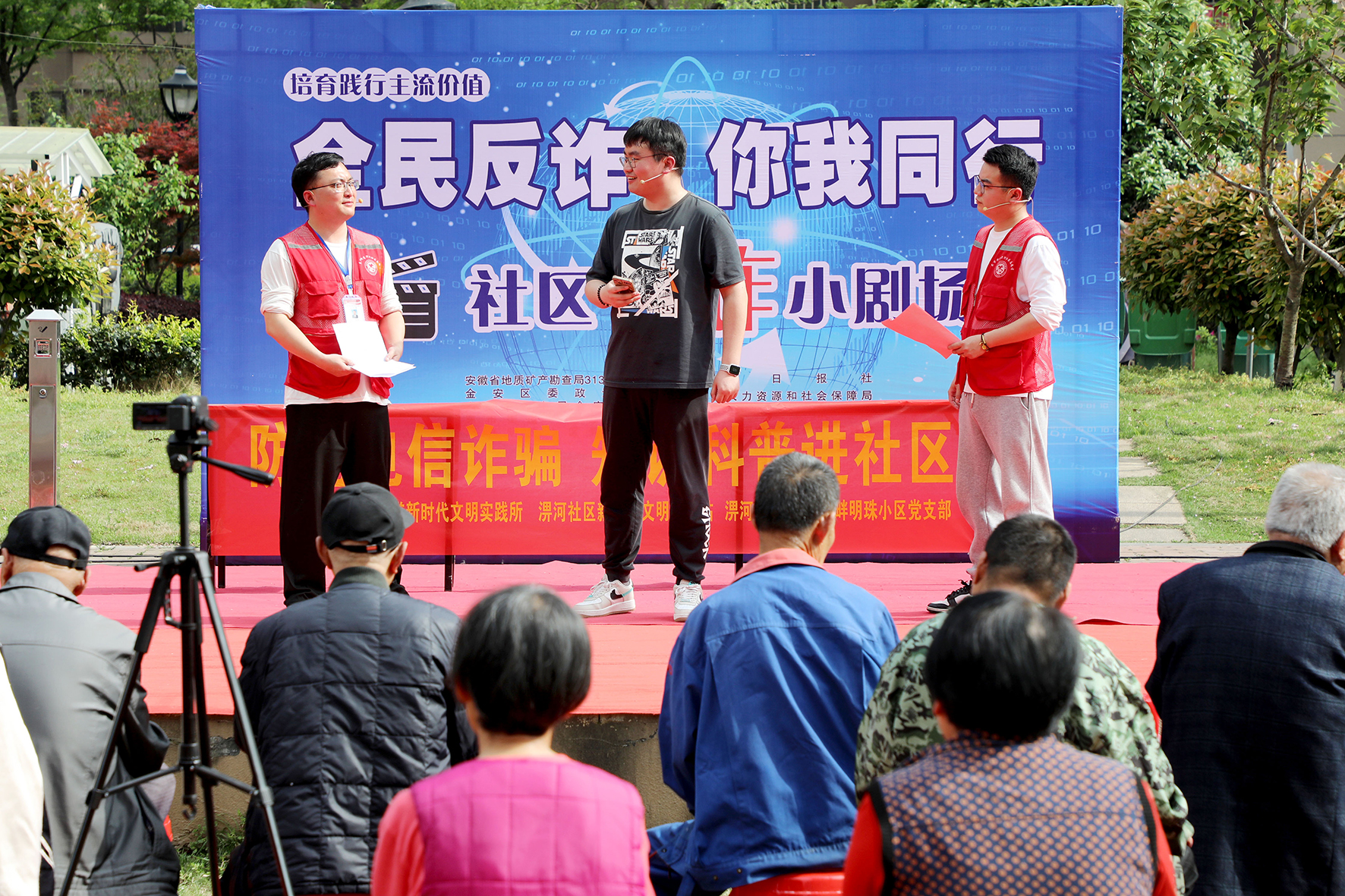 為進一步提升居民識騙防騙意識,創(chuàng)新開展防范電信網(wǎng)絡詐騙宣傳,4月15日,由安徽省六安市金安區(qū)東市街道淠河社區(qū)主辦開展的“社區(qū)反詐小劇場”開演,現(xiàn)場通過民警面對面以案說法、社區(qū)工作人員自編自導自演反電詐短劇、互動有獎競答等形式,讓群眾在寓教于樂的氛圍中學習反詐知識,增強反詐技能,筑牢反詐“防護網(wǎng)”。