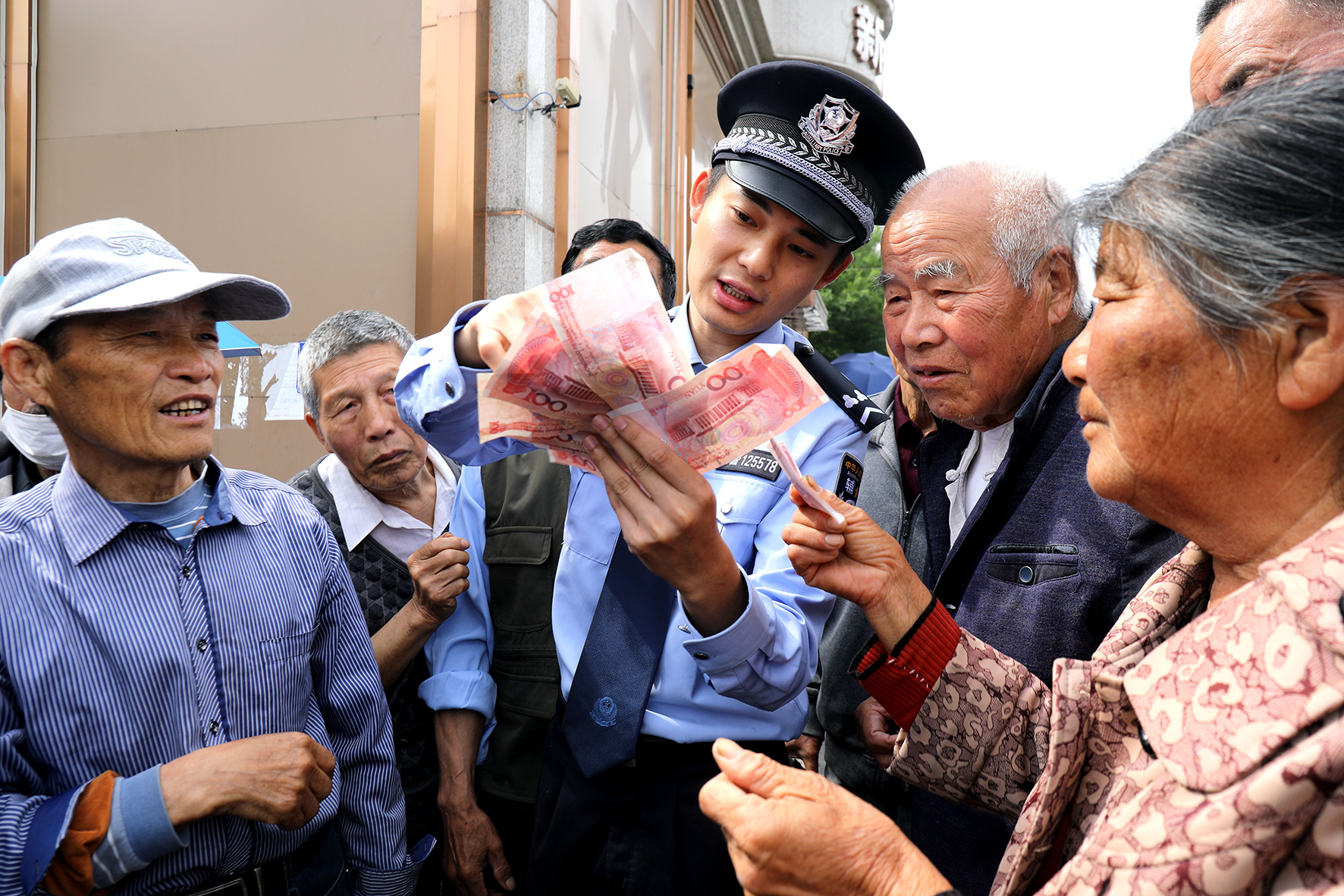 5月9日,安徽省舒城縣公安局經(jīng)偵大隊(duì)聯(lián)合城中派出所深入轄區(qū)飛霞公園,向老年人群體開展反假幣宣傳。“5·15”經(jīng)偵日即將來臨,民輔警通過發(fā)放宣傳資料、面對面講解等方式,現(xiàn)場教授老年群眾“一看、二摸、三聽”的假幣識別技巧,以提高群眾假幣識別能力和防范意識,全面防范和打擊假幣違法犯罪行為。