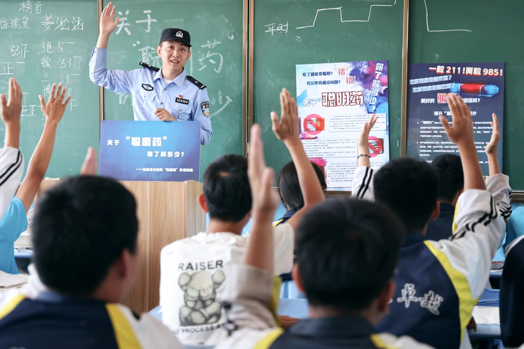圖為民警走進(jìn)教室向?qū)W生們講解“聰明藥”的危害。