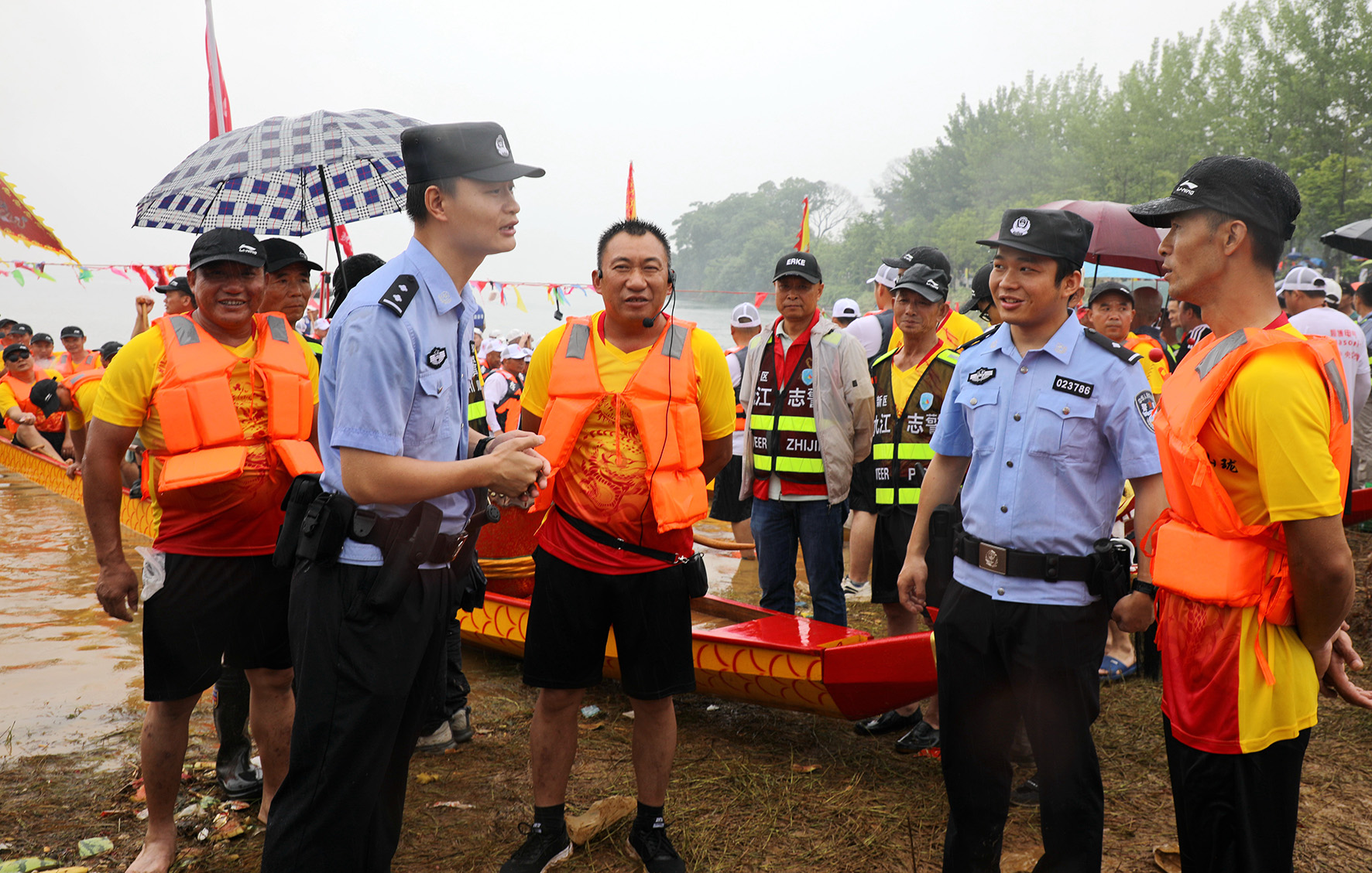 6月9日,江蘇省鹽城市公安局亭湖分局巡特警在2024年中華龍舟大賽現(xiàn)場(chǎng)執(zhí)勤。