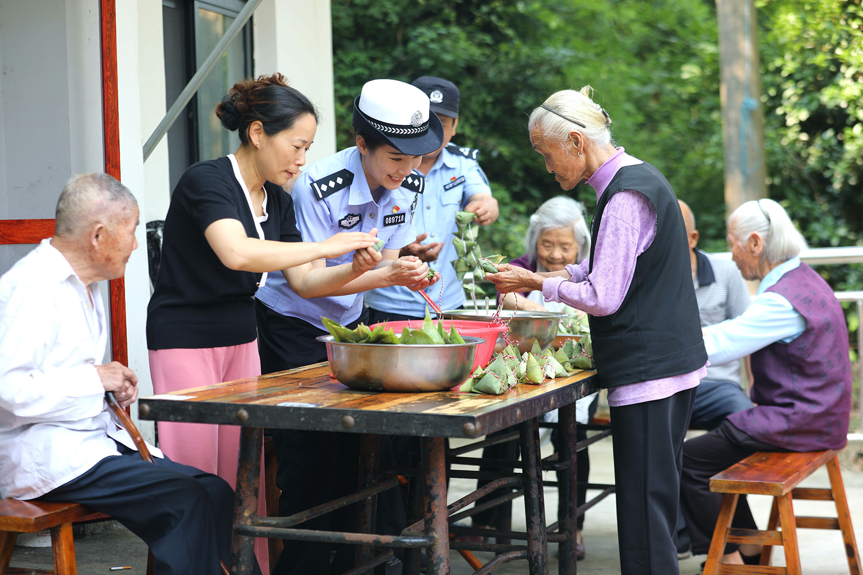 6月9日,安徽省舒城縣公安局交管大隊(duì)聯(lián)合五顯派出所走進(jìn)轄區(qū)敬老院,與老人們一起包粽子,宣講出行、用電等方面安全知識(shí)。