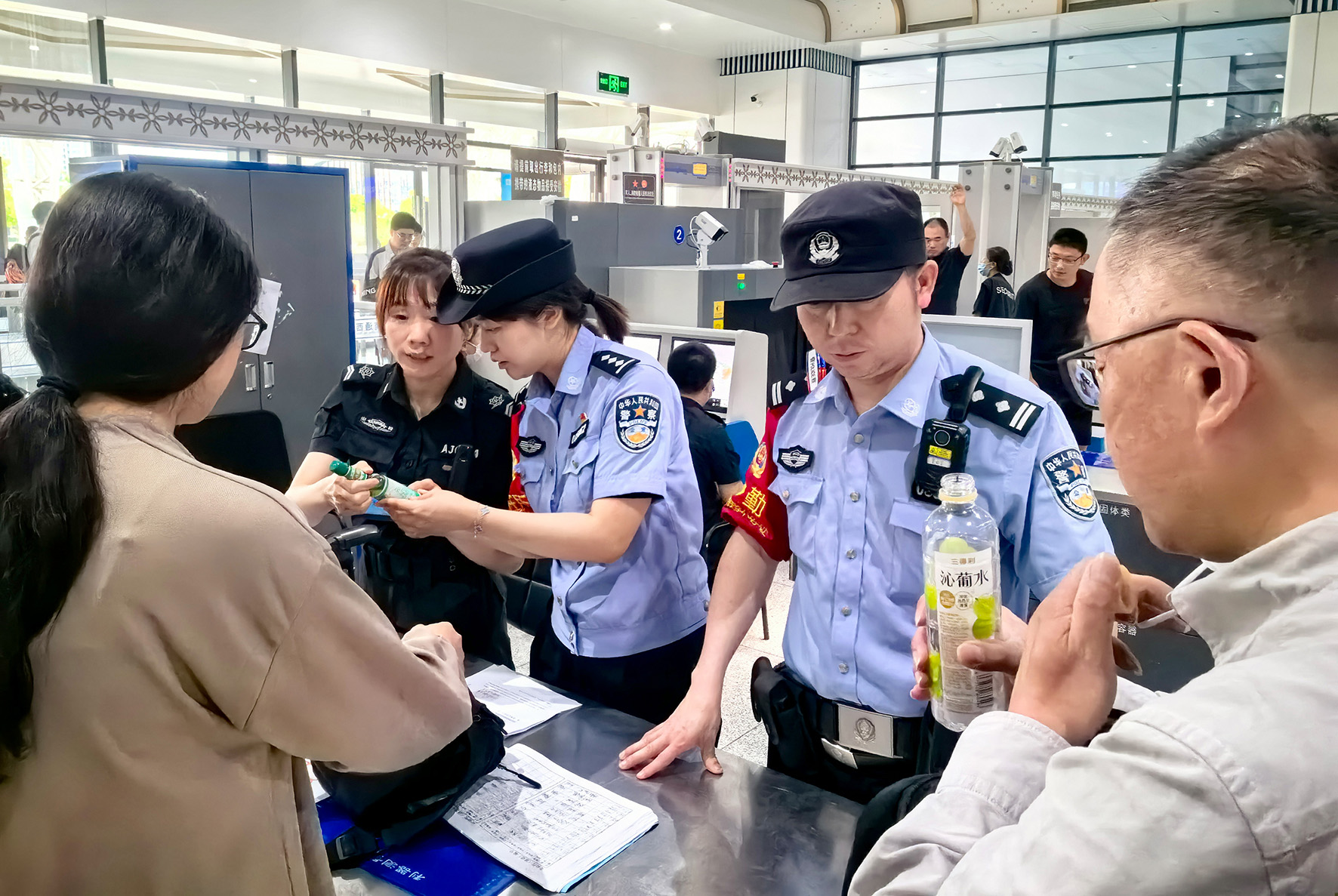 6月10日,南京鐵路公安處南通站派出所民警在檢查旅客行李。為保障端午假期旅客安全出行,南通站派出所著力加強(qiáng)安檢督導(dǎo),統(tǒng)籌抓好假期大客流安檢工作。
