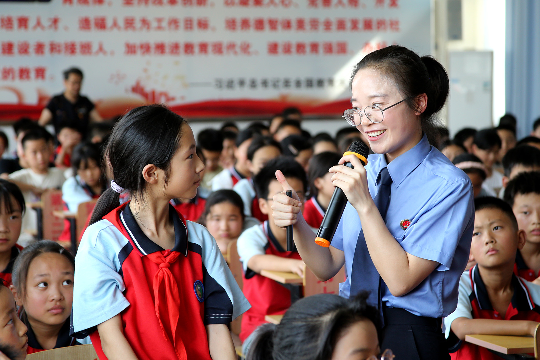 圖為檢察官在授課中與學(xué)生交流互動(dòng)。