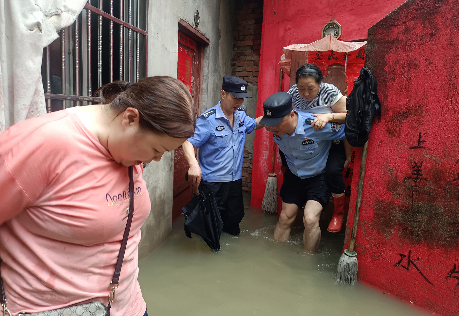 6月30日,安徽省蕪湖市暴雨傾盆。蕪湖市公安局鏡湖分局弋磯山派出所社區(qū)民警輔警聯(lián)合社區(qū)工作人員冒雨深入轄區(qū)花園社區(qū)內(nèi)澇區(qū)域開(kāi)展巡查,幫助動(dòng)員居民撤離危險(xiǎn)區(qū)域。