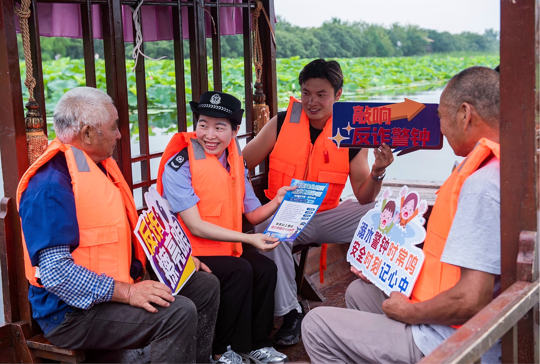 7月15日,安徽省含山縣司法局普法宣傳小分隊(duì)走進(jìn)陶廠鎮(zhèn)大漁灘濕地公園,通過發(fā)放宣傳單、講解典型案例等形式,向游船上的游客宣傳反詐、環(huán)境保護(hù)等法律知識(shí)。
