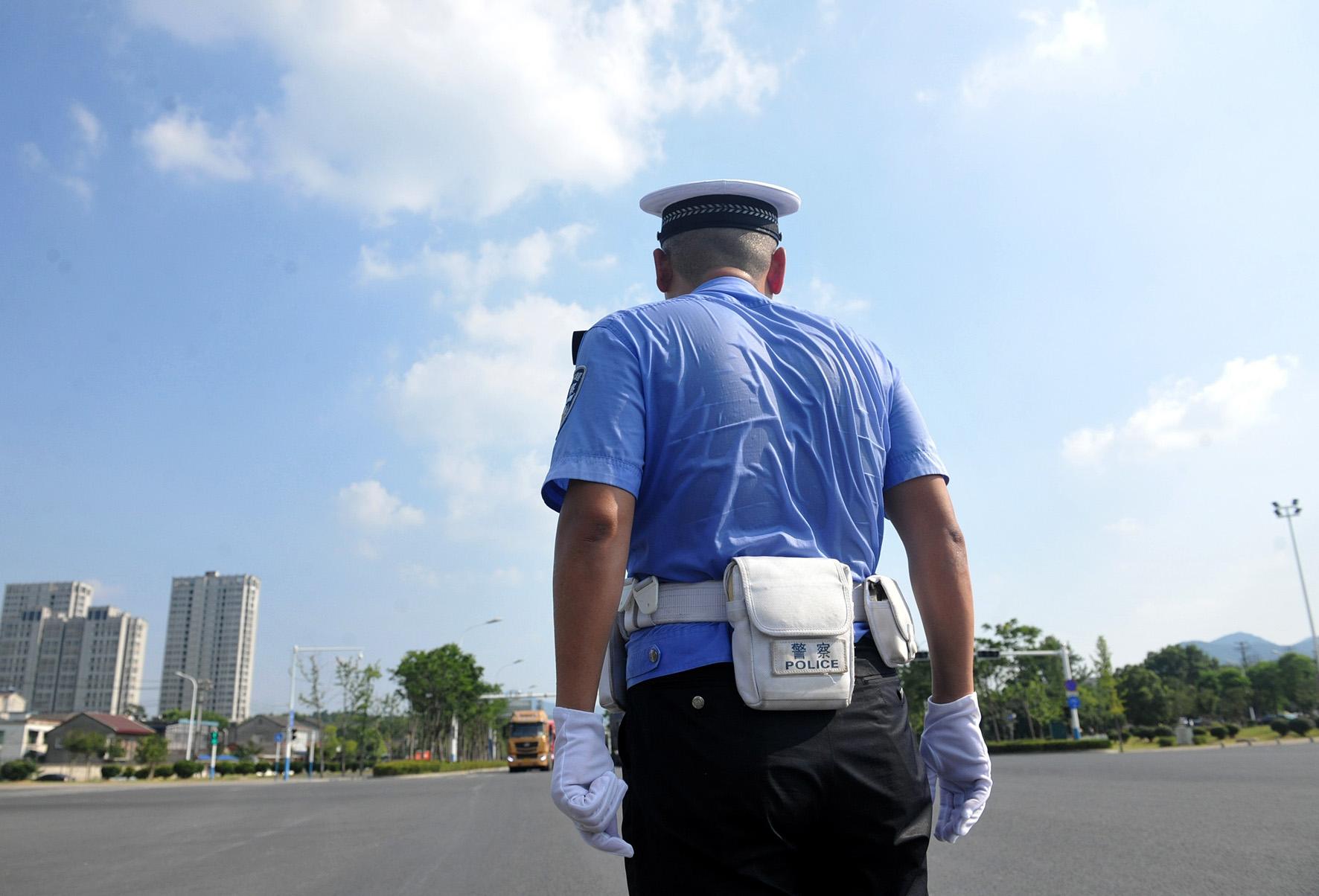 圖為7月23日,民警在望城路口執(zhí)勤。