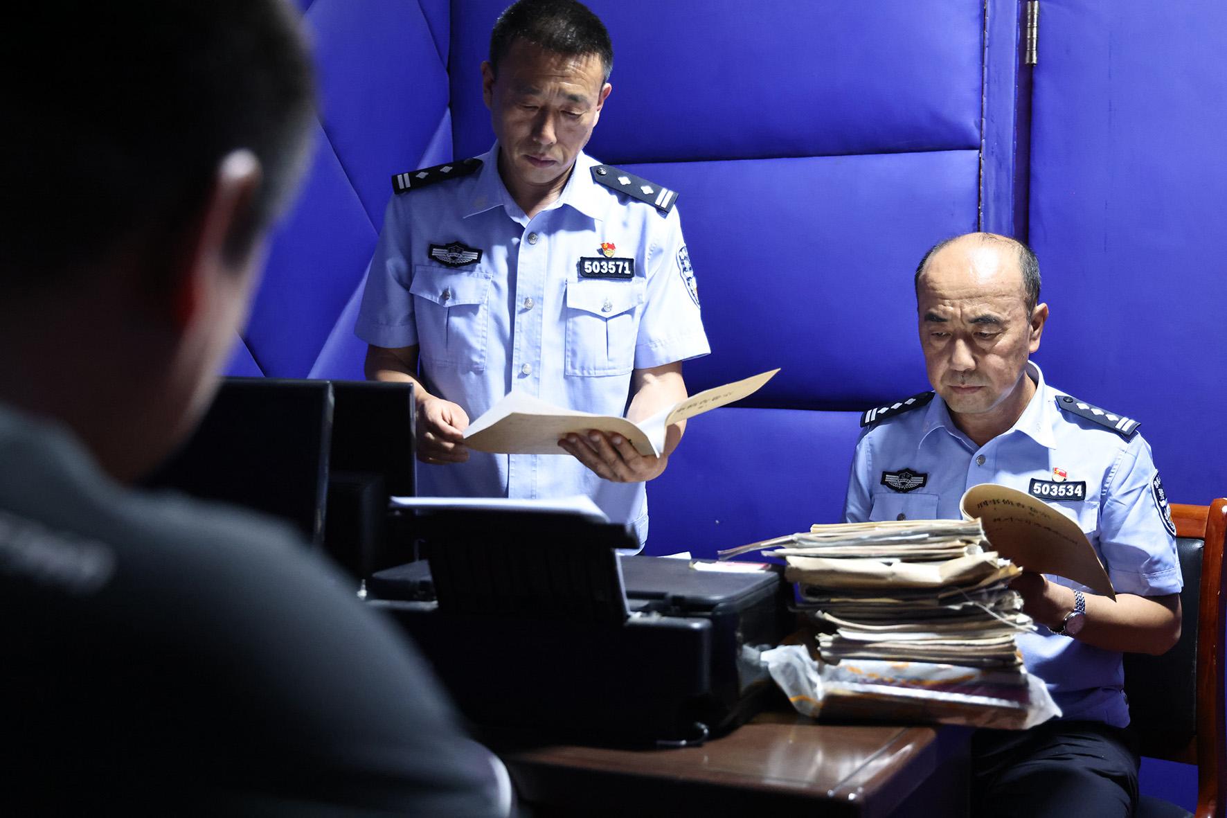 圖為7月25日,辦案民警固定證據(jù),提審犯罪嫌疑人。