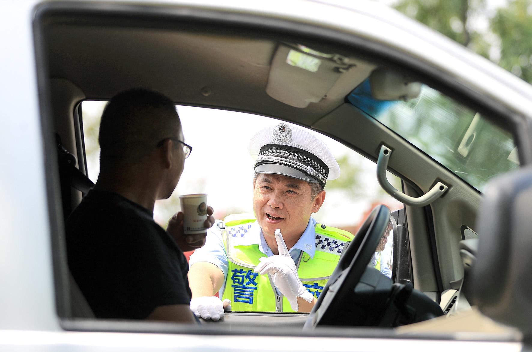 “來(lái),喝口涼茶!”8月5日,湖北省荊門市公安局交警支隊(duì)屈家?guī)X大隊(duì)民警在S247省道,免費(fèi)為過(guò)往司乘人員提供“平安涼茶”。