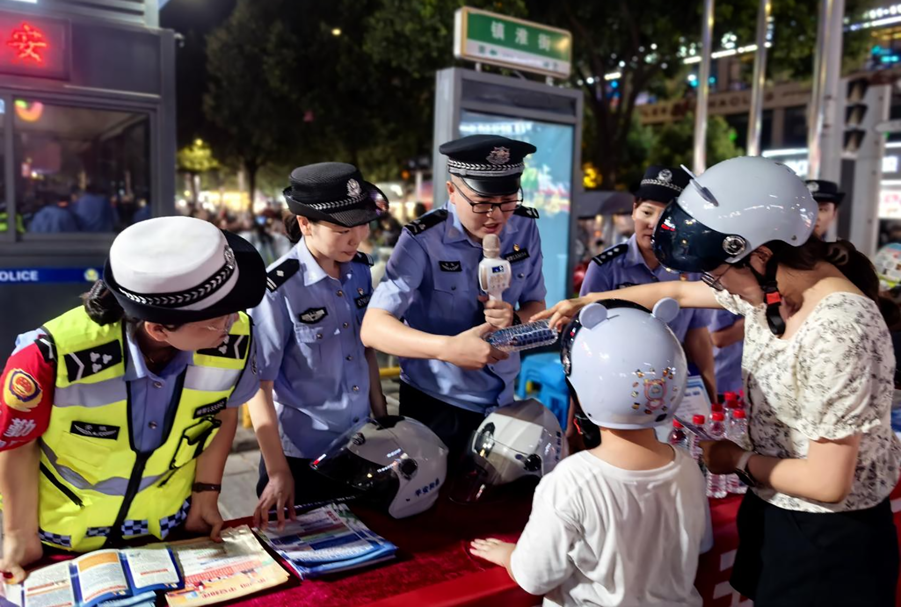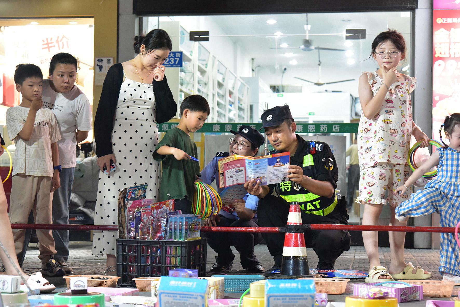 8月11日晚,安徽省和縣公安局經(jīng)偵、禁毒、刑偵等警種聯(lián)合在商業(yè)集中區(qū)域“擺夜攤”,與市民“零”距離互動,通過有獎競答,贈送法治用品等形式,提升群眾自我保護意識和法治意識。