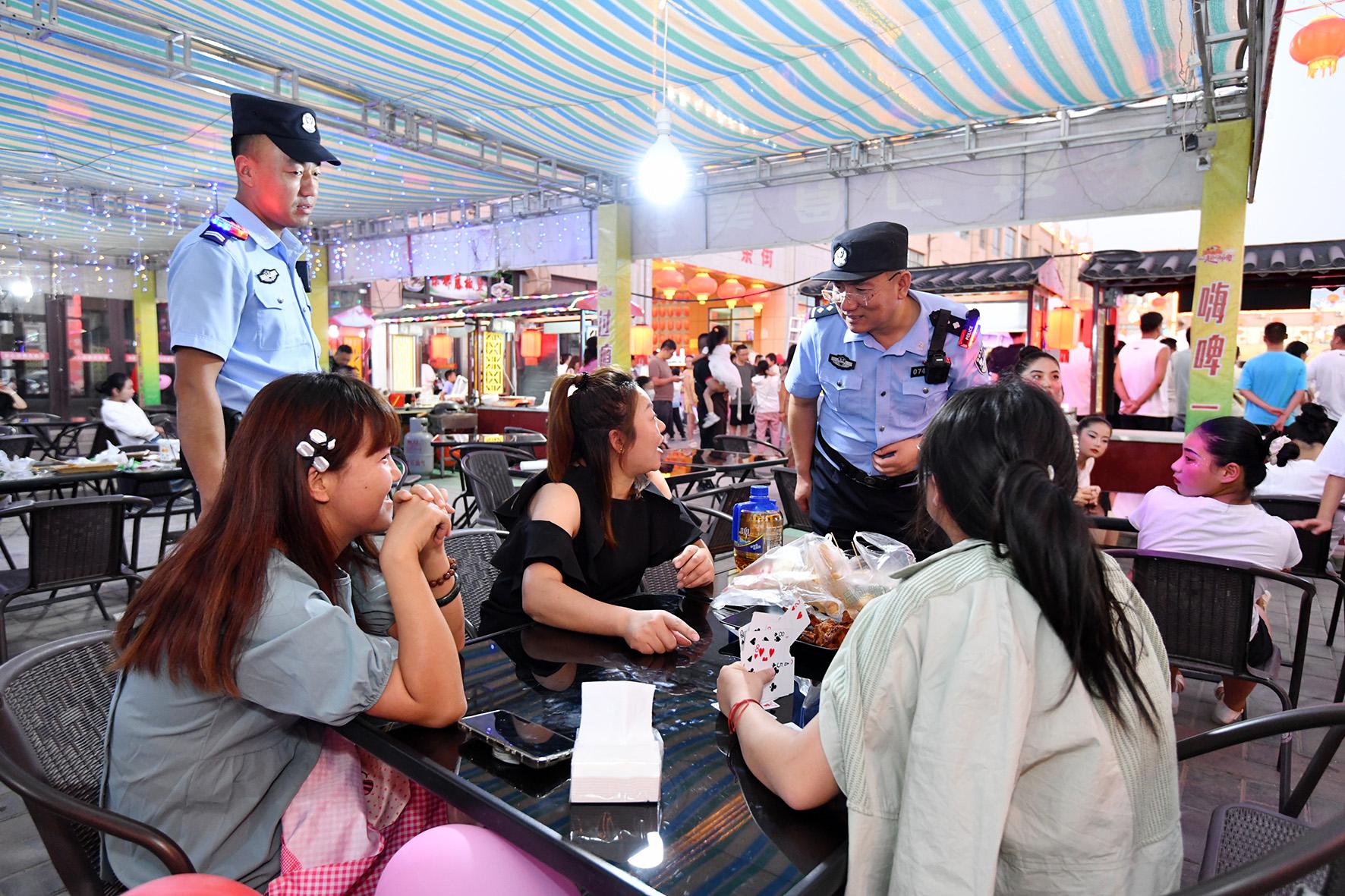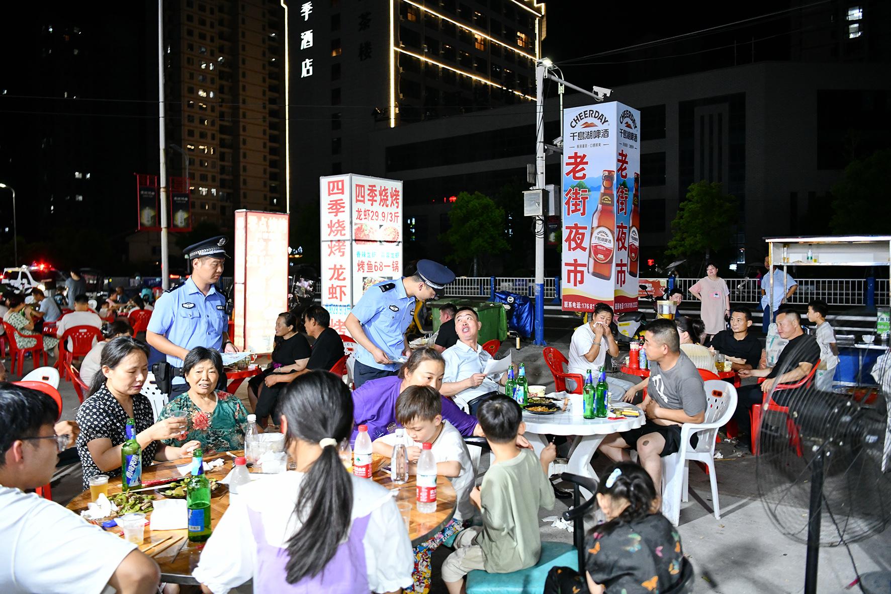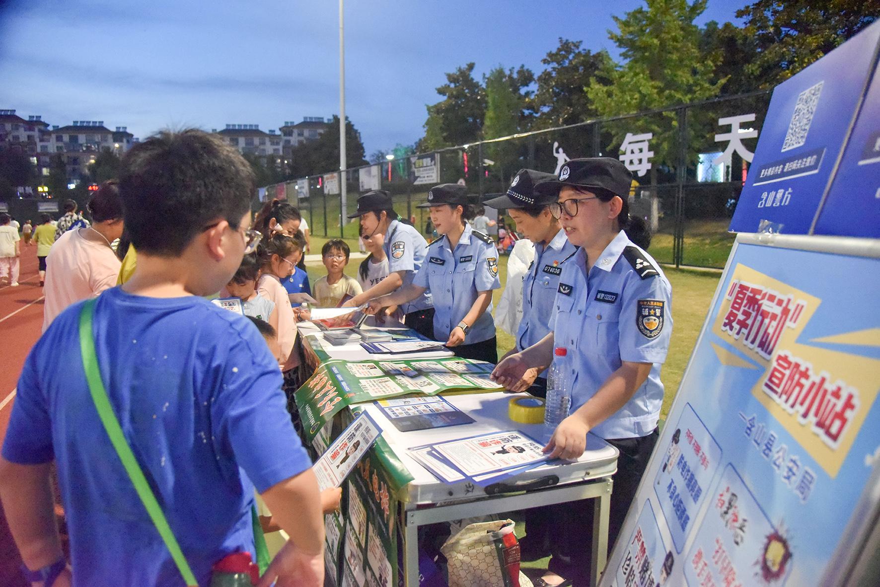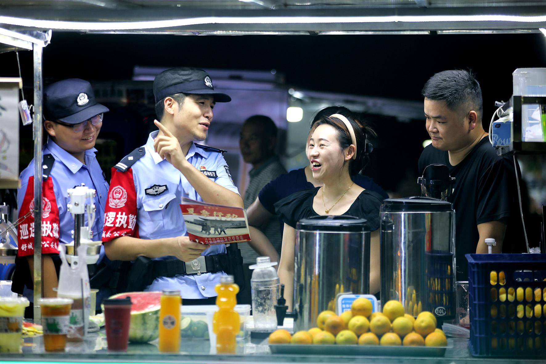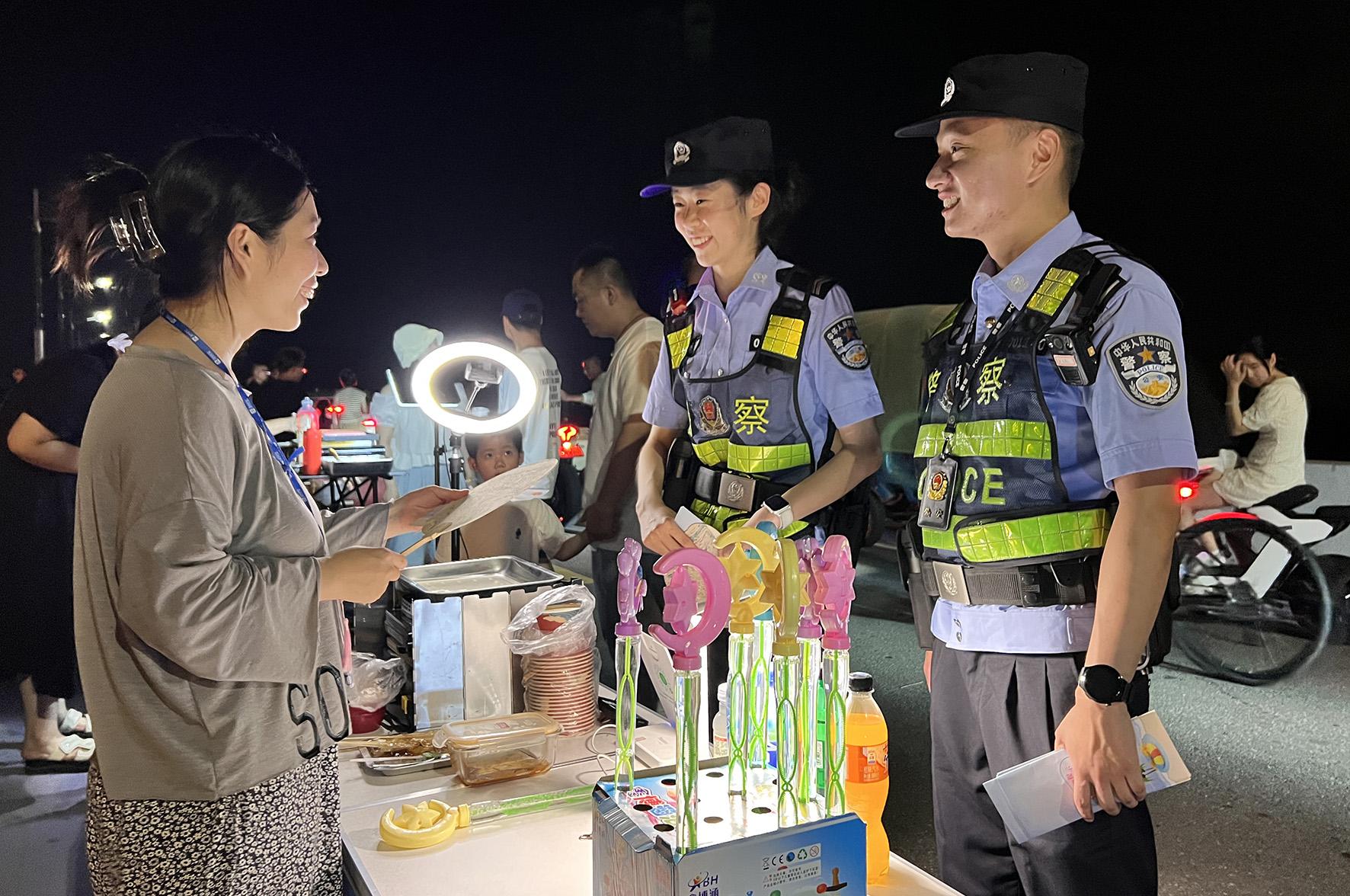 8月10日晚,河南省??h公安局結(jié)合夏夜治安巡查宣防集中統(tǒng)一行動,加大對轄區(qū)商圈、夜市、廣場等人員密集場所的檢查巡邏守護力度,向群眾宣傳反詐、禁毒、拒賭、防火防盜等安全防范知識。
