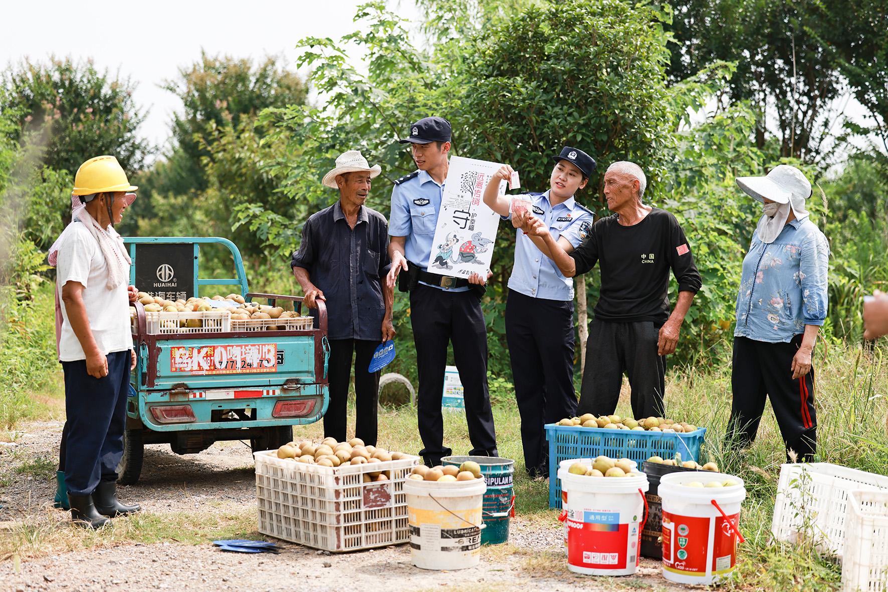 8月14日,安徽省和縣公安局經(jīng)偵大隊(duì)民警走進(jìn)果園,向果農(nóng)們講解經(jīng)濟(jì)犯罪的常見類型和手段,提醒果農(nóng)們在果品銷售、合作經(jīng)營等經(jīng)濟(jì)活動中要保持警惕,避免落入陷阱。