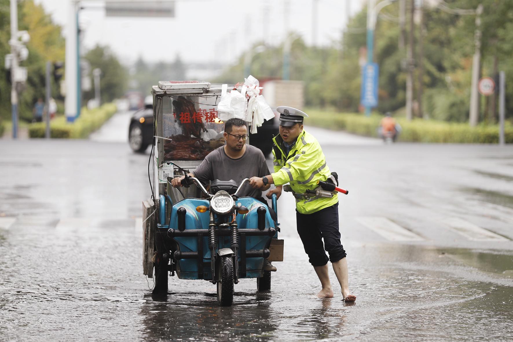 8月19日,安徽省蕪湖市迎來強降雨天氣。蕪湖市公安局交警支隊鳩江大隊聞訊而動,全警上崗,疏導交通,服務市民,確保市民平安出行。