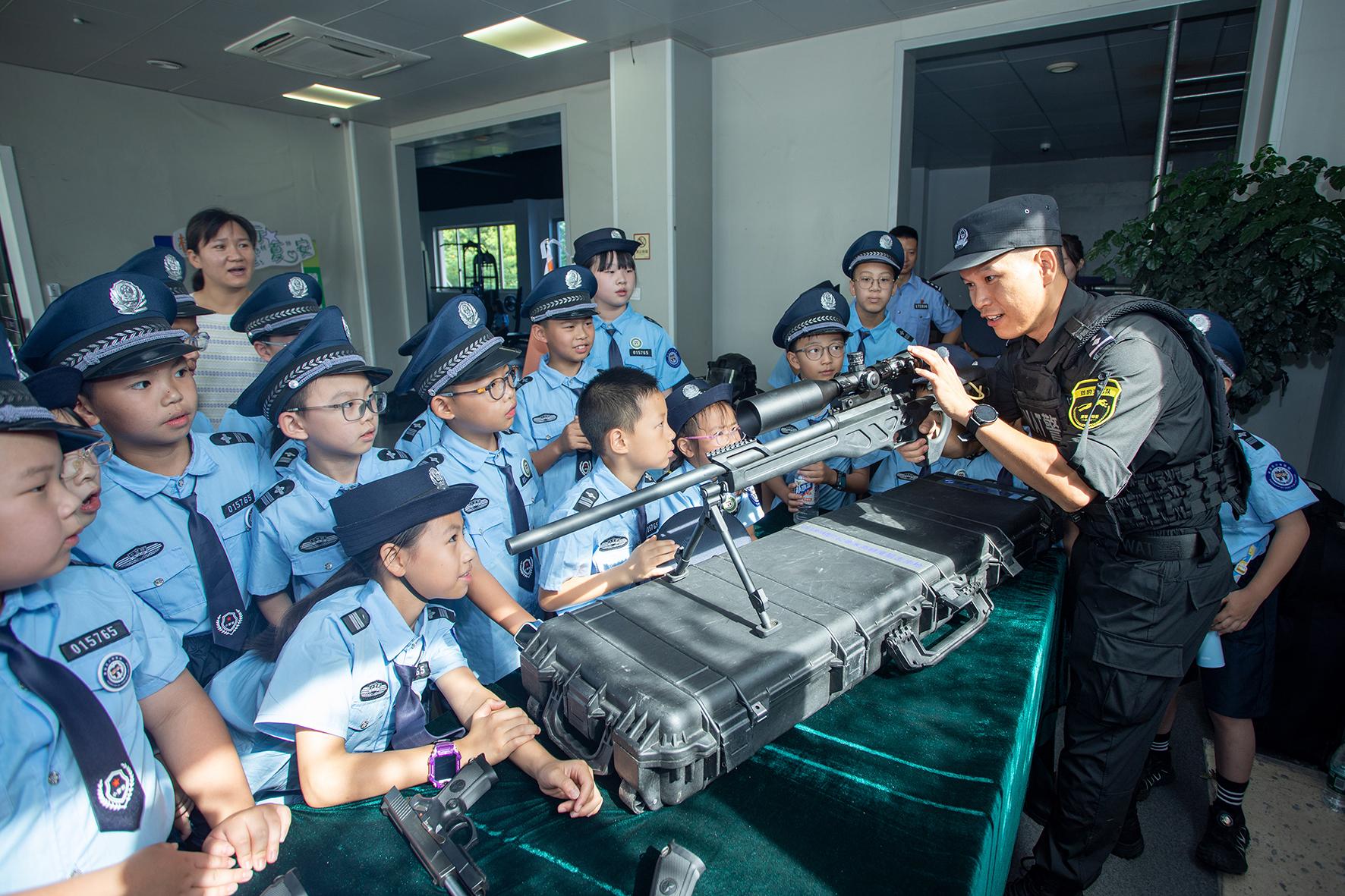 8月20日,浙江省臺州市公安局黃巖分局組織少年警校的“小警察”們走進巡特警大隊,觀看警務技能表演,近距離接觸警務裝備,體驗特警生活,同時還接受了安全防范教育。
