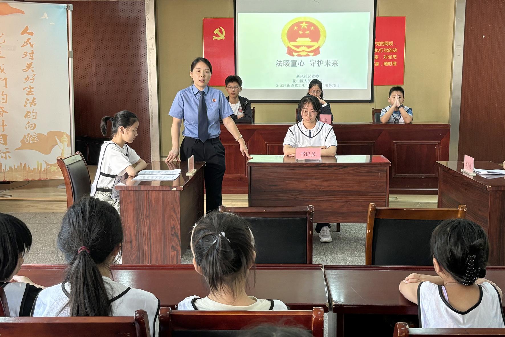 8月20日,安徽省馬鞍山市花山區(qū)金家莊街道聯(lián)合花山區(qū)人民檢察院走進(jìn)新風(fēng)社區(qū),開(kāi)展“法暖童心 守護(hù)未來(lái)”模擬法庭普法實(shí)踐活動(dòng)。