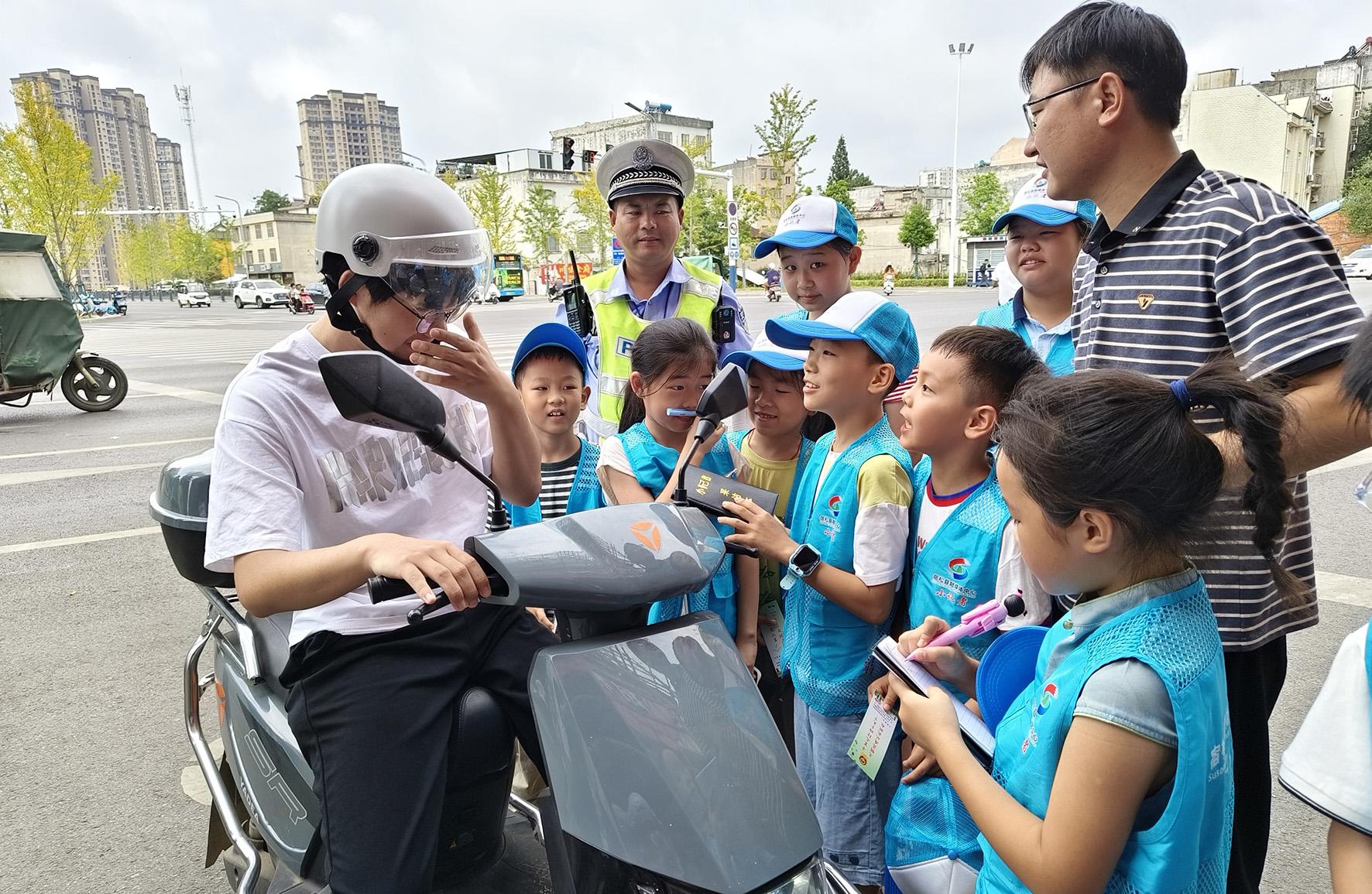 8月22日,安徽省宿松縣一批“小記者”來到夏季交通秩序整治現(xiàn)場,在交警的配合下“采訪”騎行電動車不戴頭盔、逆向、闖紅燈的市民,讓他們接受了一次特殊的交通安全教育。