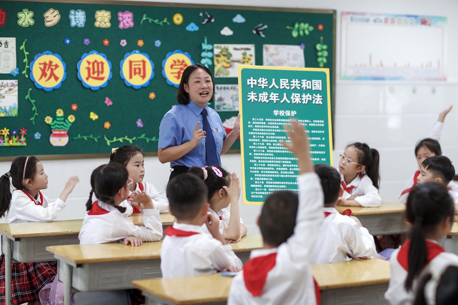 9月2日,江蘇省興化市人民檢察院未成年人法治宣講團的工作人員來到興化市文峰小學(xué),為學(xué)生們送上開學(xué)季的第一堂法治課。