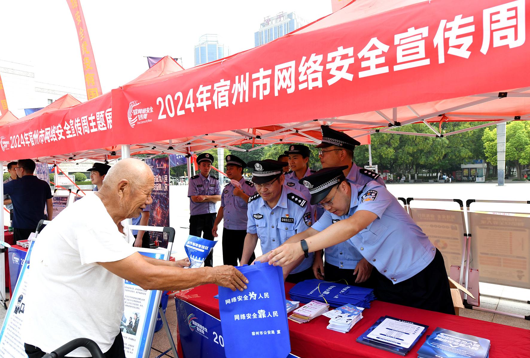 9月9日,安徽省宿州市公安局網(wǎng)安支隊民警向市民發(fā)放宣傳材料并講解網(wǎng)絡(luò)安全常識。當(dāng)日,2024年“國家網(wǎng)絡(luò)安全宣傳周”在全國各地同時啟動。