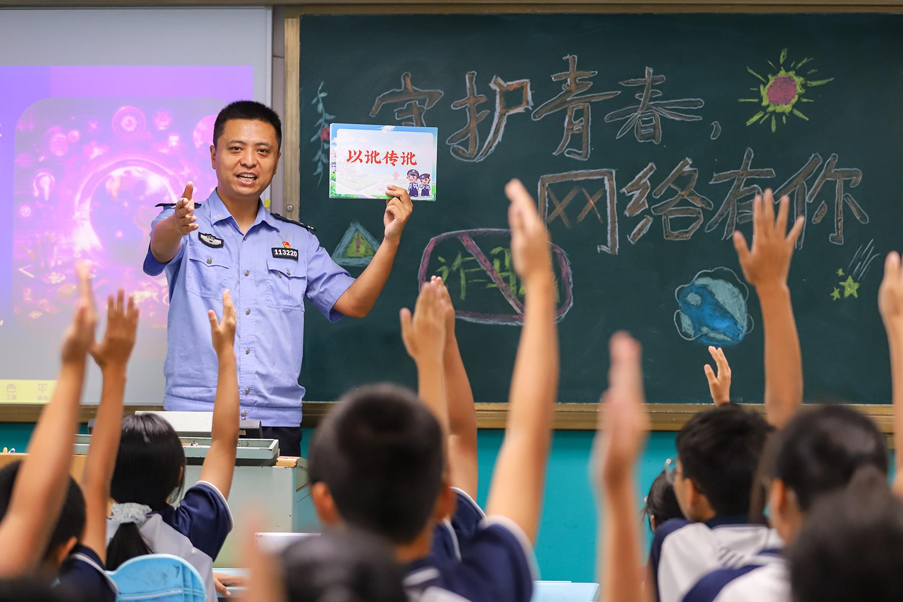 9月9日,浙江省臺州市公安局黃巖分局新前派出所民警來到轄區(qū)的小學(xué),給正在電腦教室上課的學(xué)生們講解網(wǎng)絡(luò)安全理念和相關(guān)法律知識。